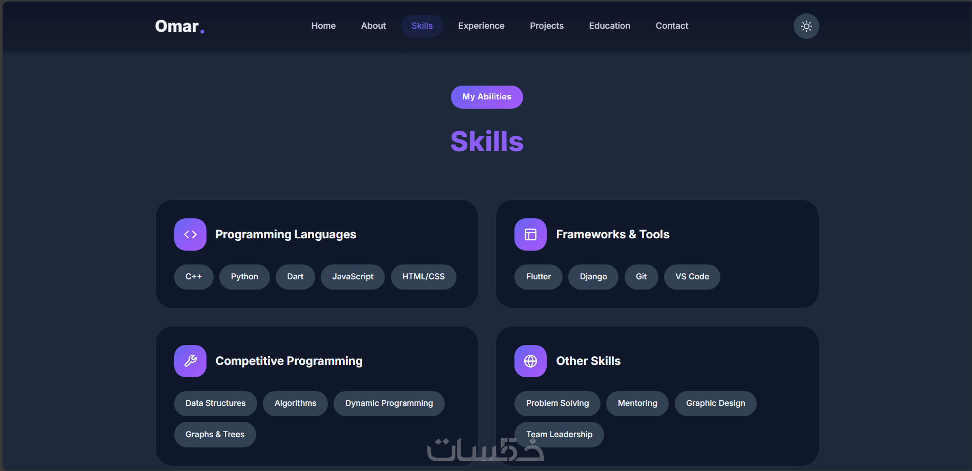 -المهارات (Skills): عرض مهاراتك التقنية بشكل مرئي وأنيق.