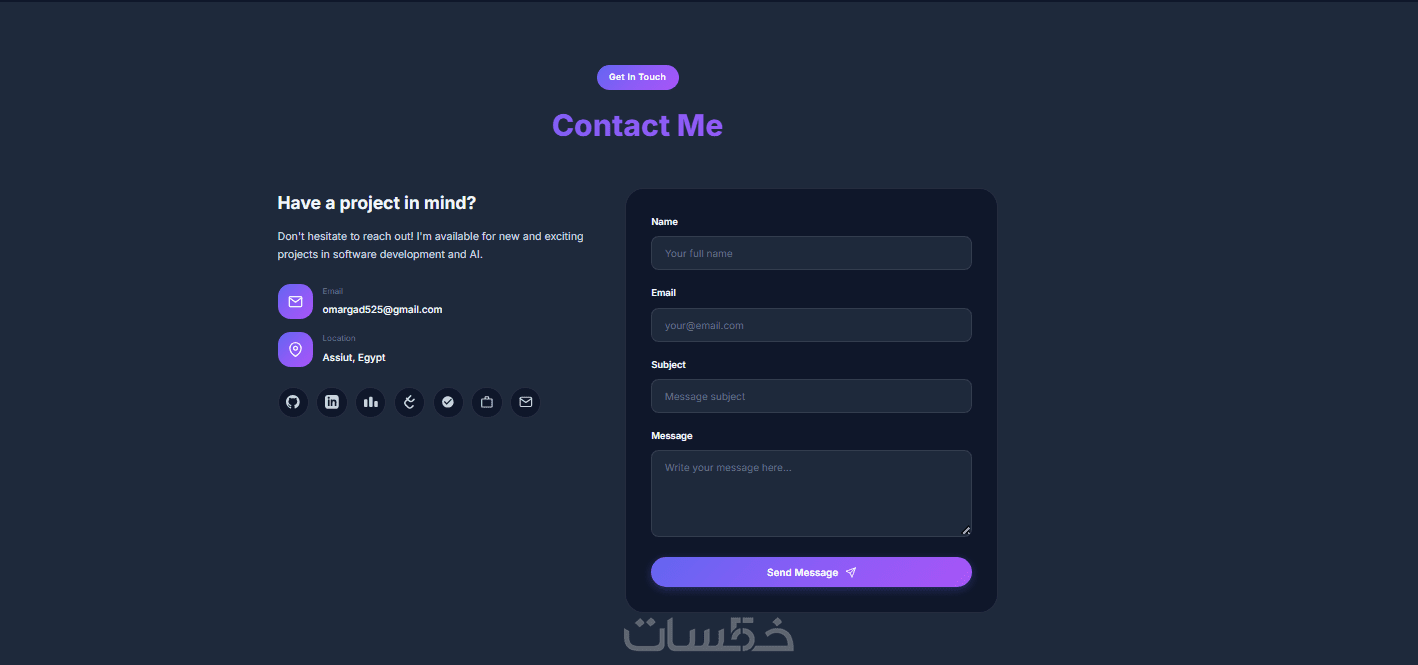 -تواصل معي (Contact): نموذج تواصل فعال مربوط ببريدك الإلكتروني مباشرة.