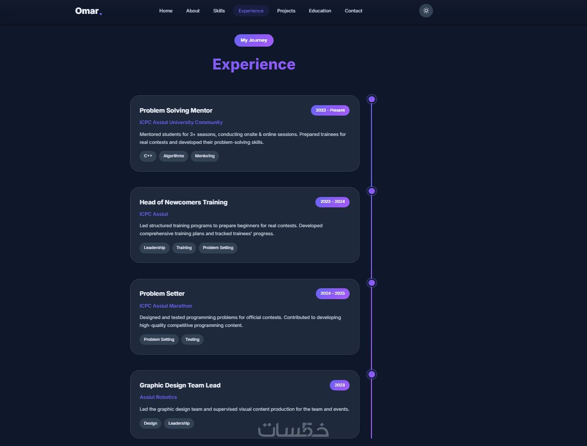 -من أنا (About): نبذة مختصرة عنك وعن خبراتك.