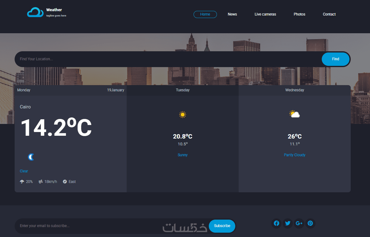 عدد الأقسام داخل الصفحة: حتى 5 أقسام (Header – About – Services – Gallery – Contact)
