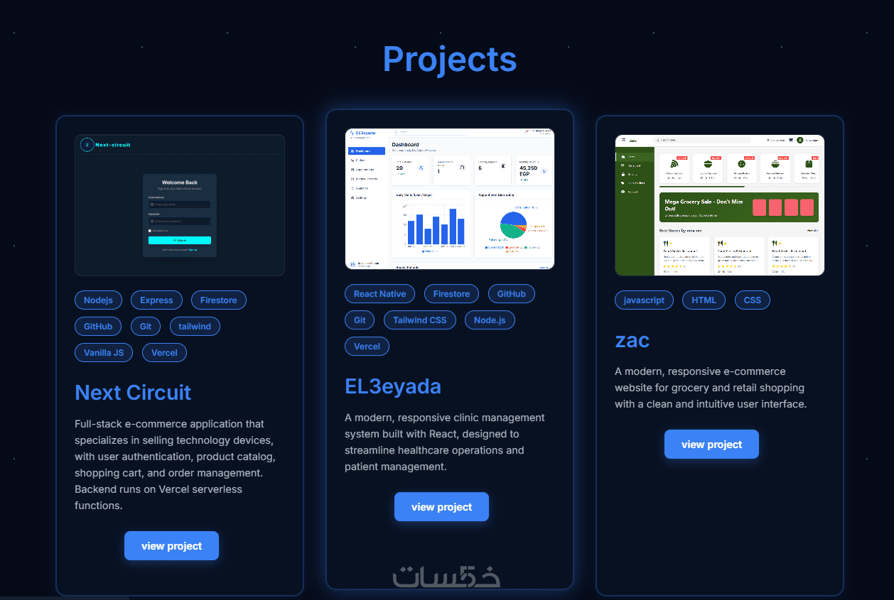 - اتصل بي (Contact Me): نموذج تواصل أو روابط مباشرة (WhatsApp, LinkedIn, GitHub, email).