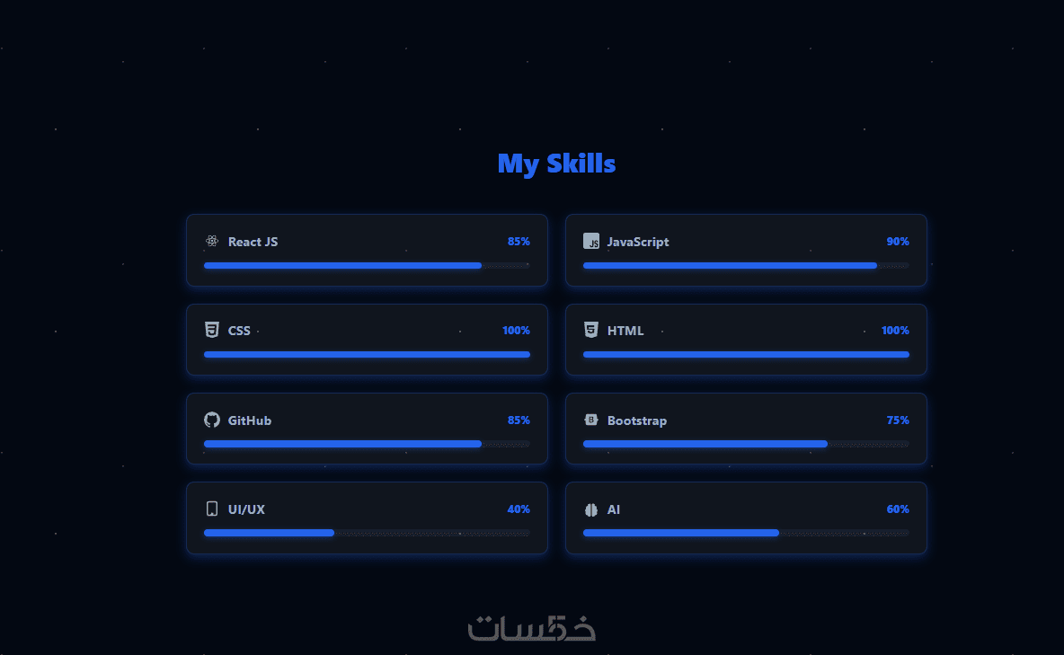 - المهارات (Skills): عرض تقني لمهاراتك باستخدام أيقونات أو أشرطة تقدم.