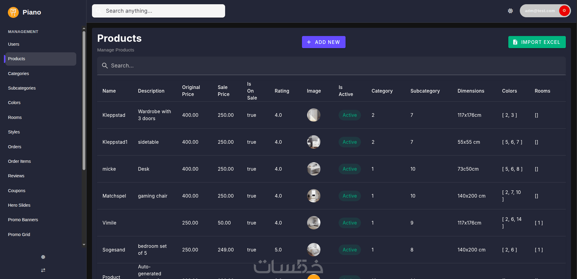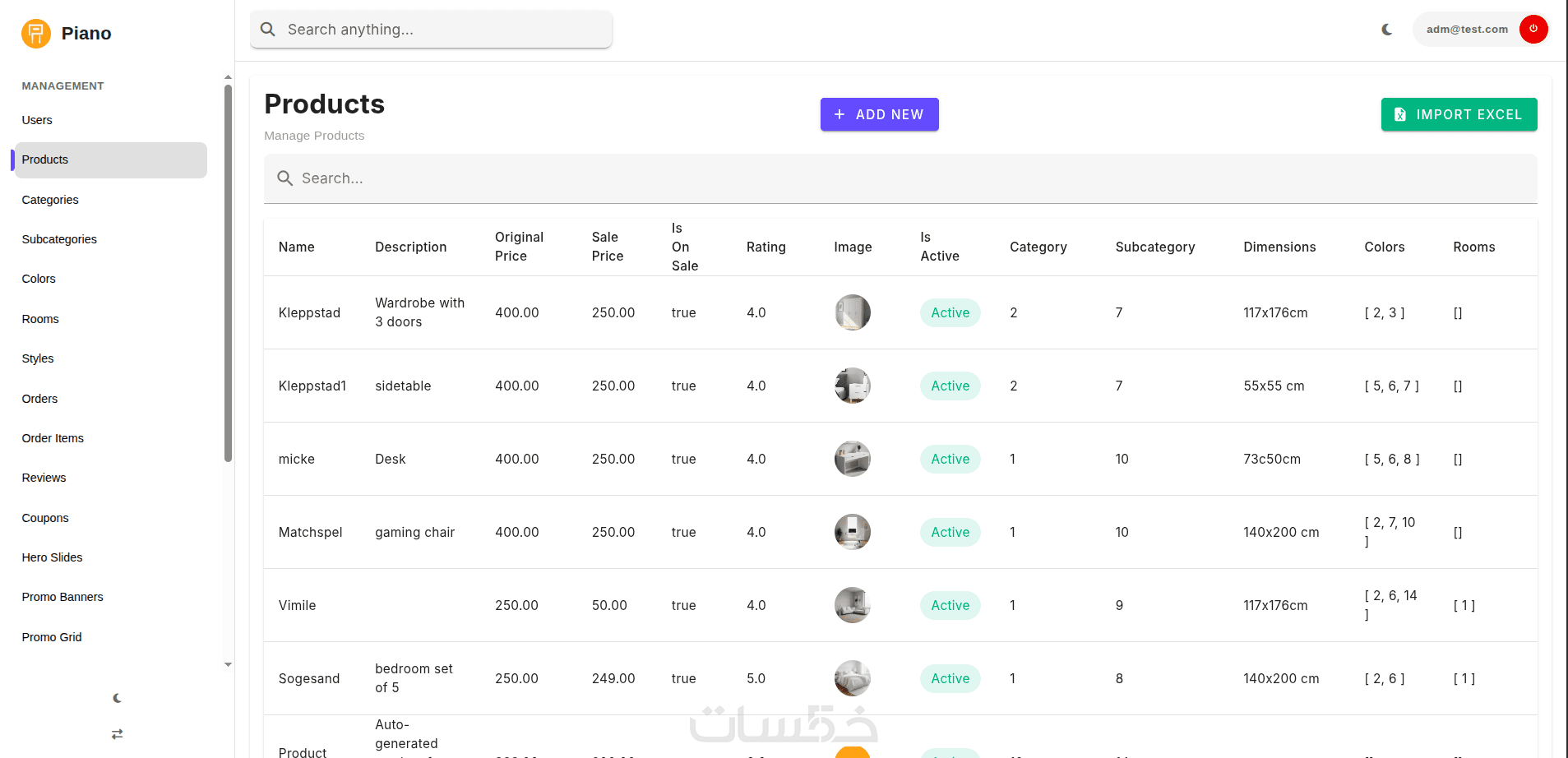 اضافة / حذف / تعديل المنتج
