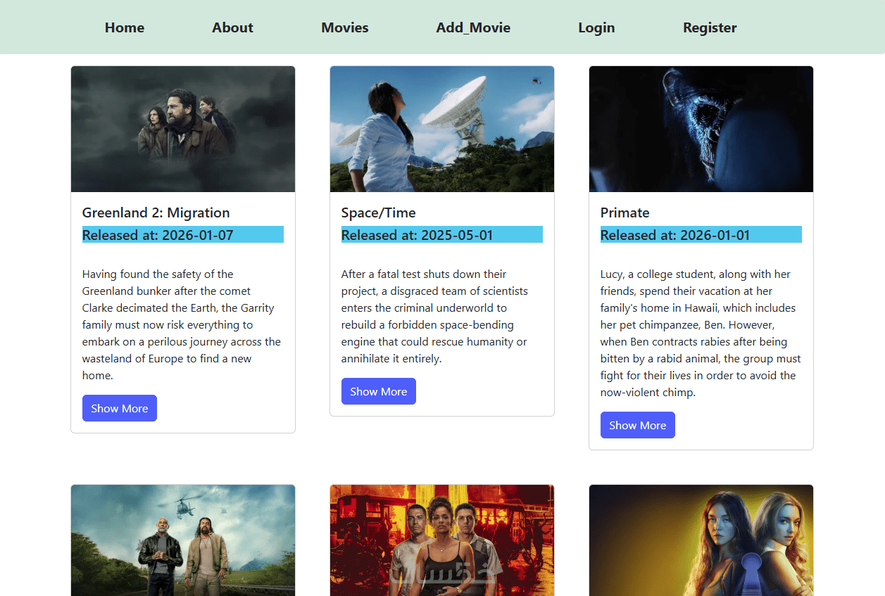 قمت بتطوير موقع أفلام يقوم بجلب البيانات من API وعرض:
