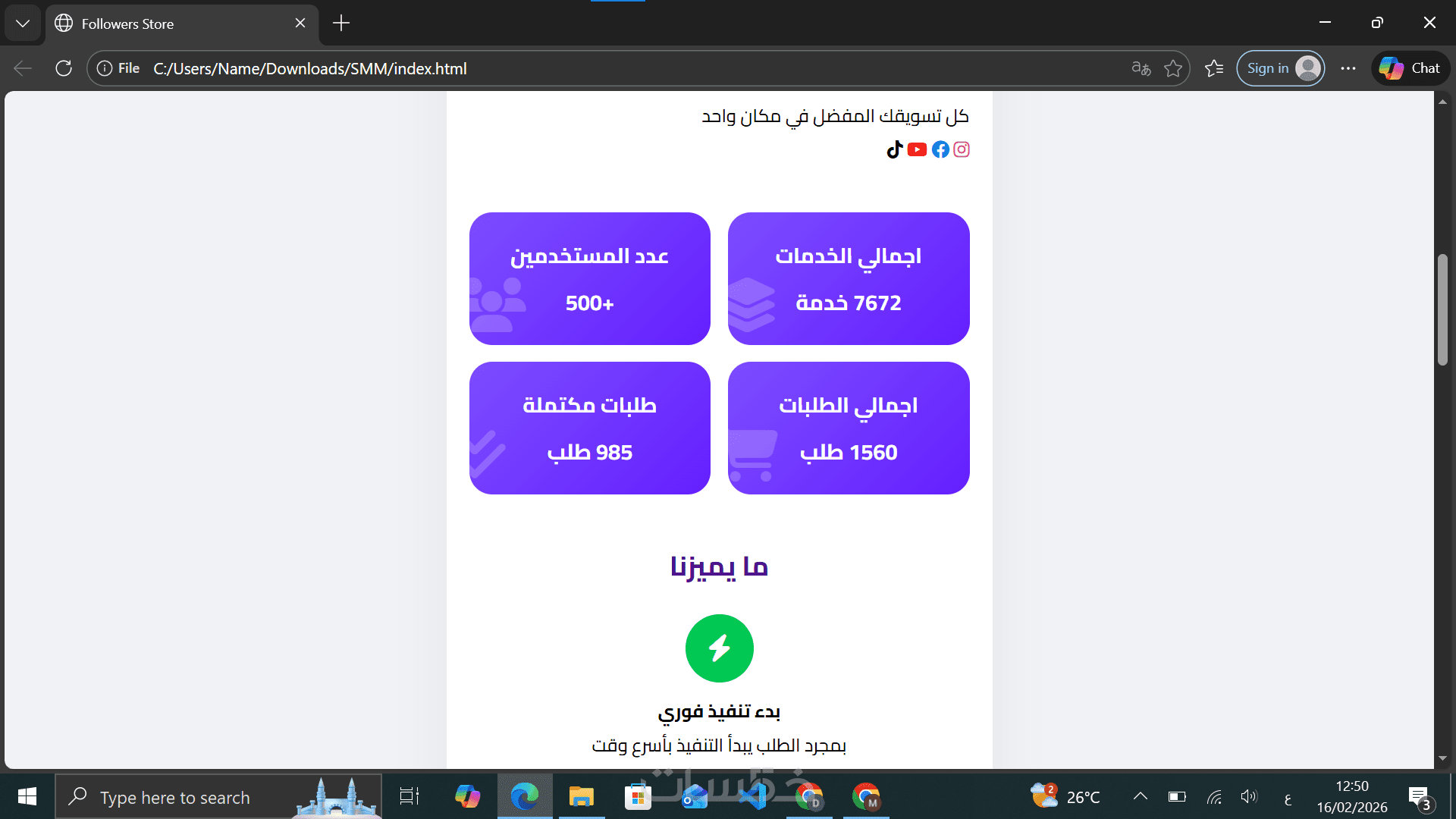 الموقع مصمم ليعمل تلقائياً؛ العميل يطلب الخدمة، والنظام يرسل الطلب للمزود