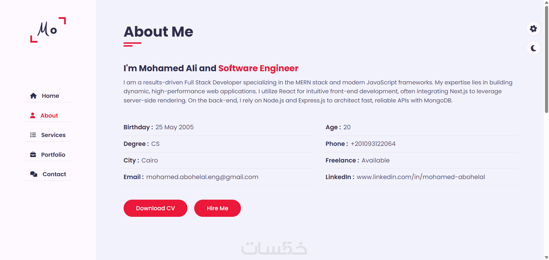 * زر تحميل الـ CV: لتسهيل الوصول لسيرتك الذاتية.