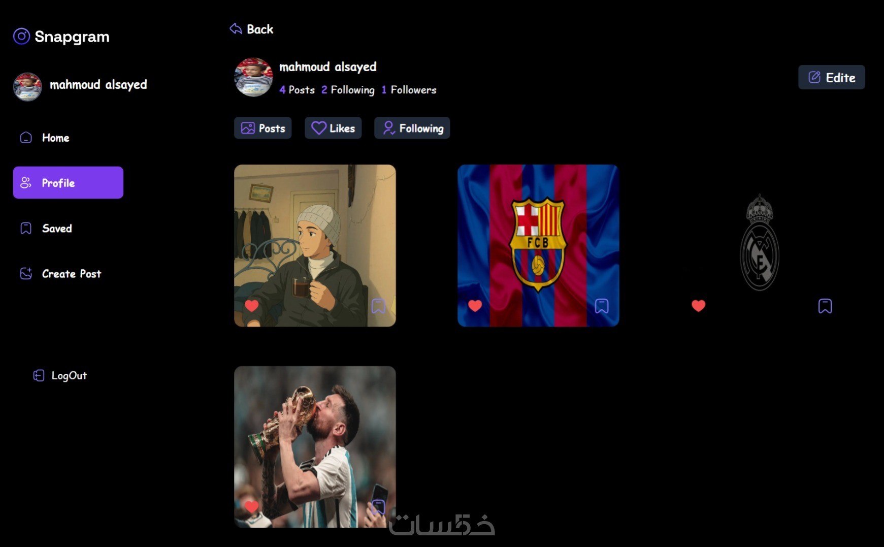 الصفحه تحتوي على 5 أقسام داخل الصفحة