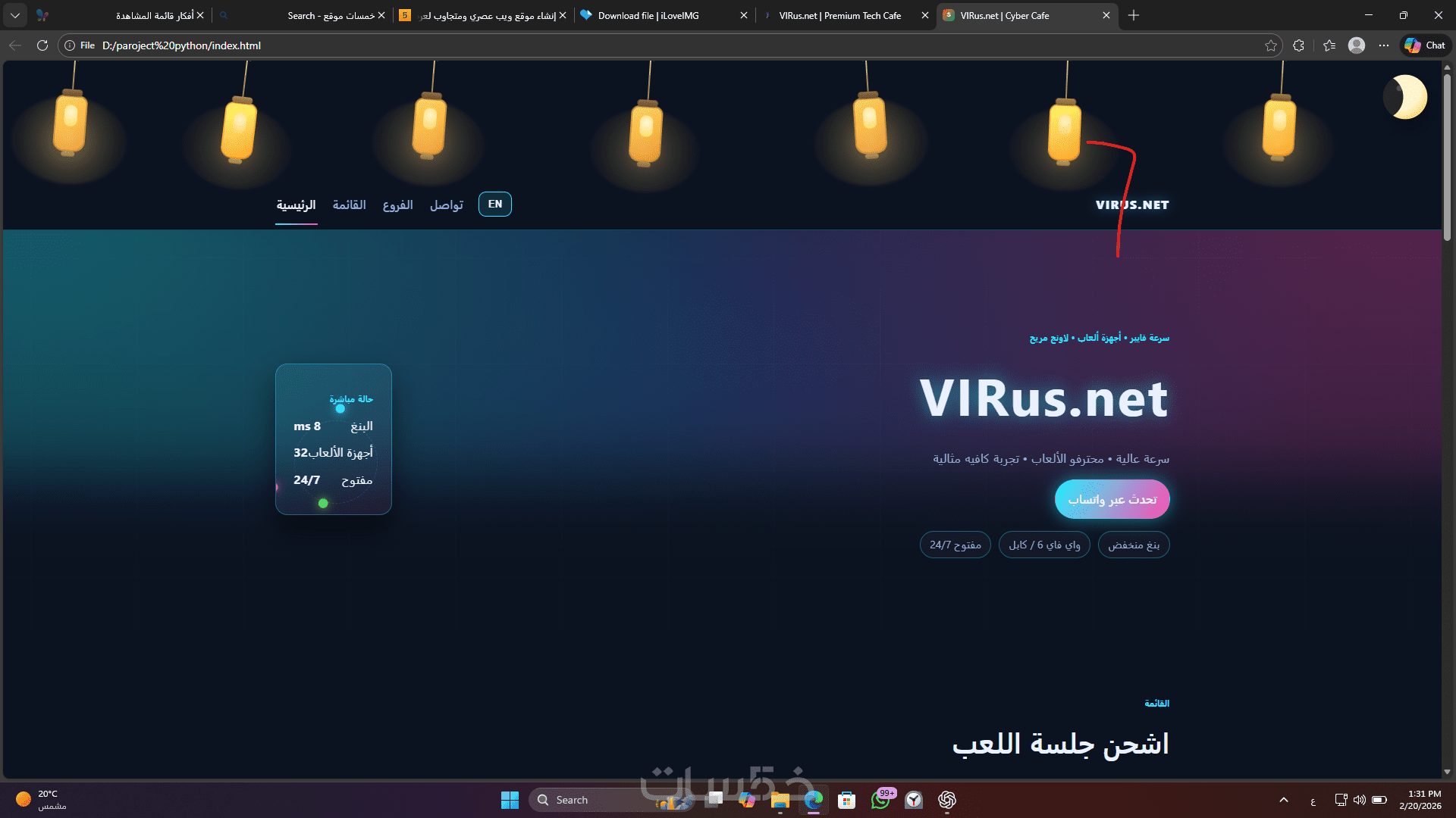 ستحصل على موقع ويب عصري ومتجاوب يعرض خدماتك أو منتجاتك بشكل منظم وجذاب.