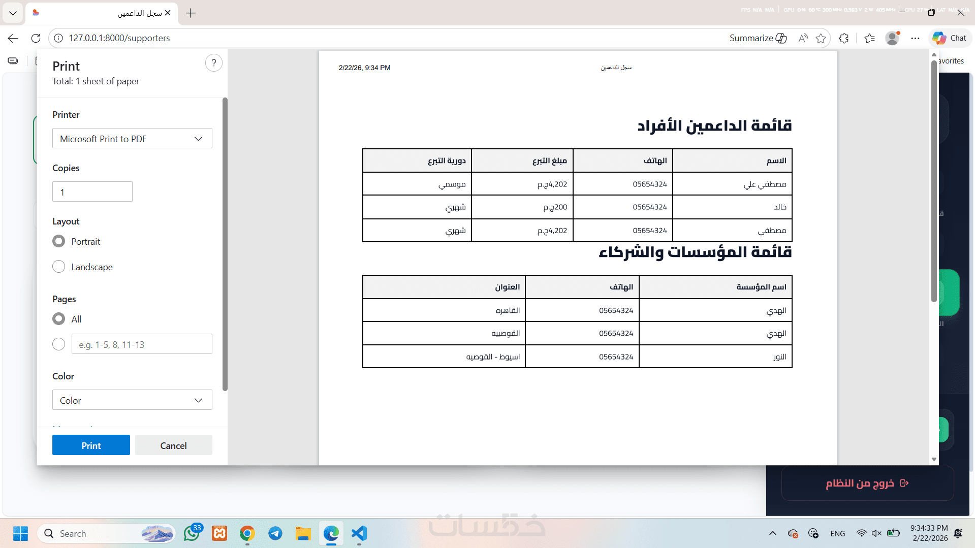 طباعة الكشوفات والتقارير بسهولة