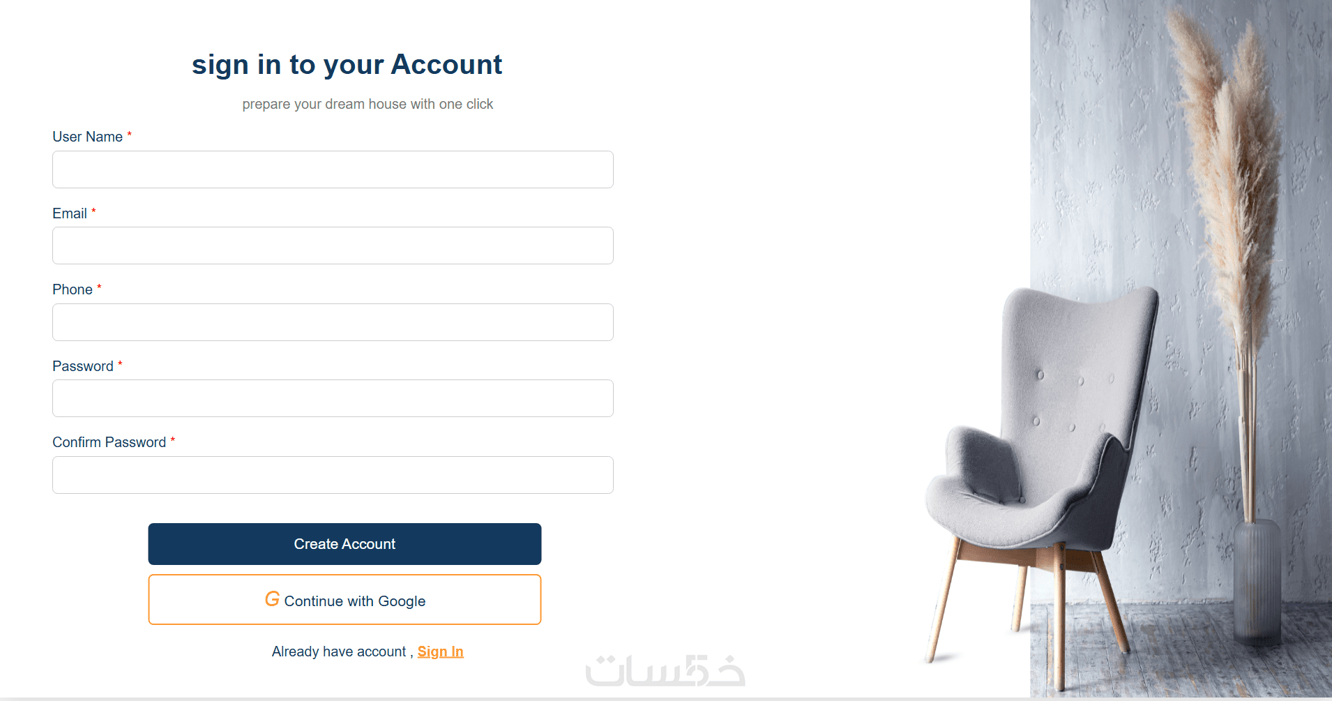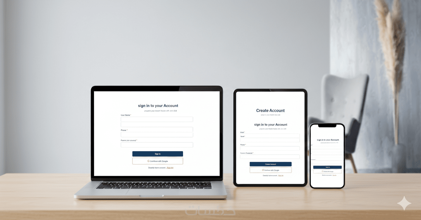 تصميم بسيط وواضح يساعد المستخدم على إنشاء حساب أو تسجيل الدخول خلال ثوانٍ بدون تعقيد.