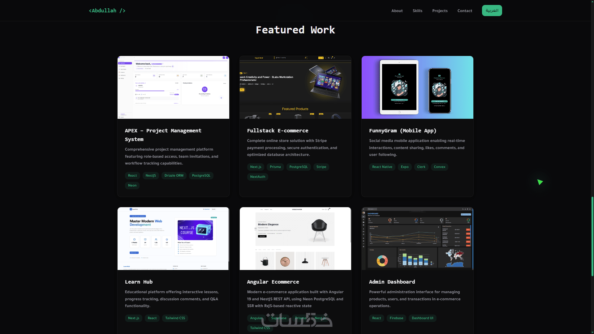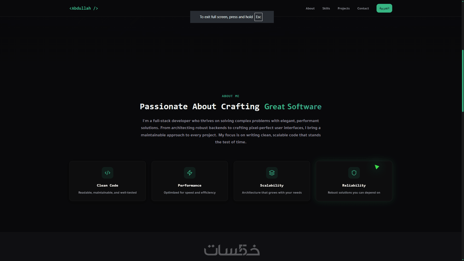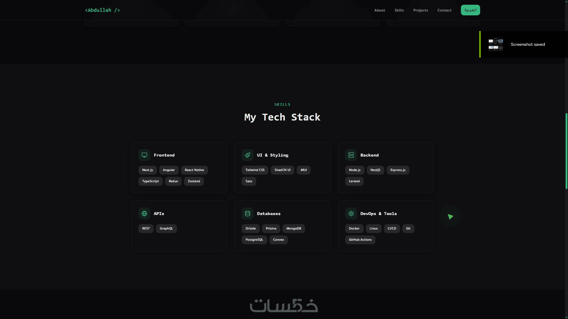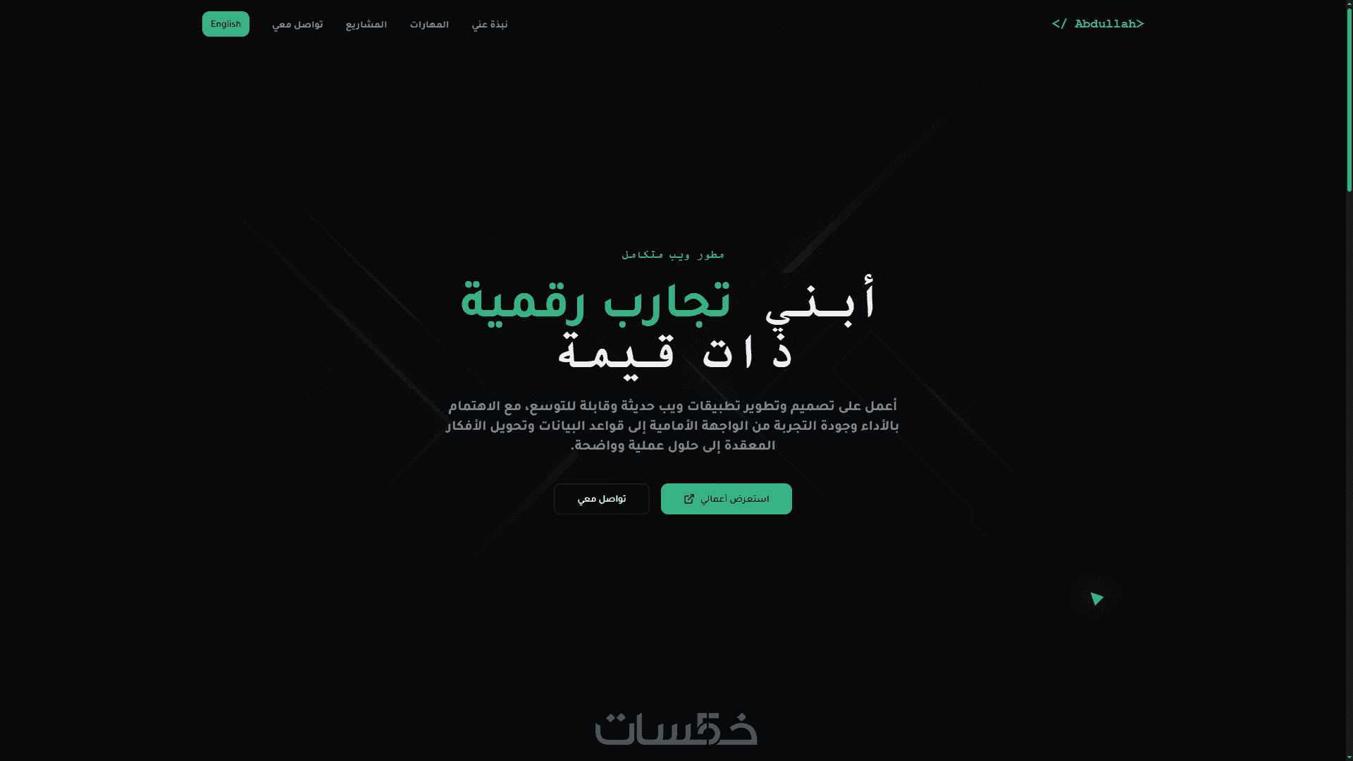 بورتفوليو شخصي قمت بتطويره لدعم اللغتين العربية والإنجليزية، يهدف إلى عرض المهارات والمشاريع البرمجية بشكل احترافي وجذاب.