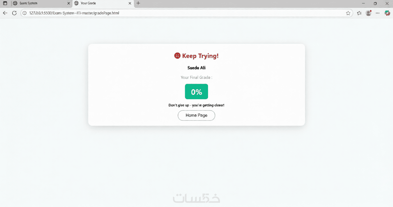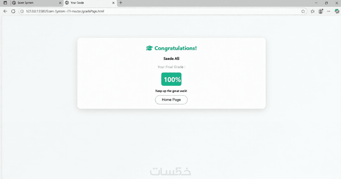 حساب النتيجة تلقائيًا بعد انتهاء الاختبار.