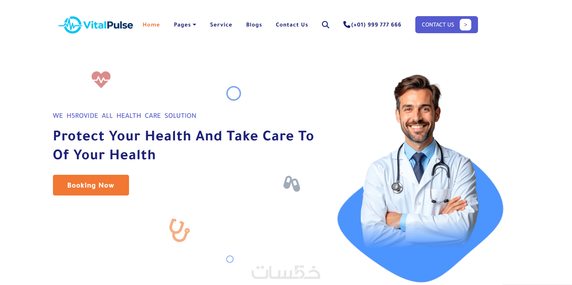 تصميم موقع عيادة مكون من 4 صفحات أساسية: