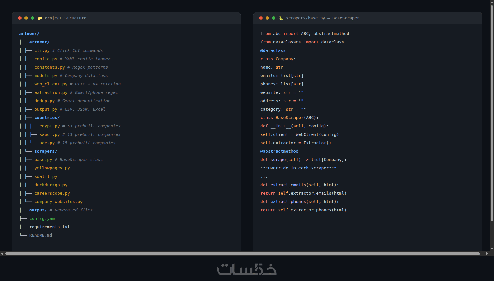 - بيانات شركات (أسماء، إيميلات، هواتف، عناوين، مواقع)