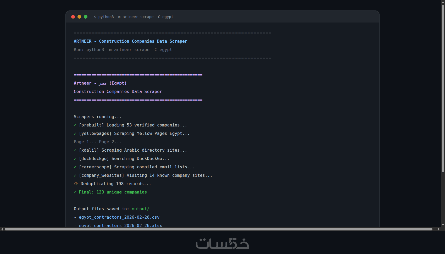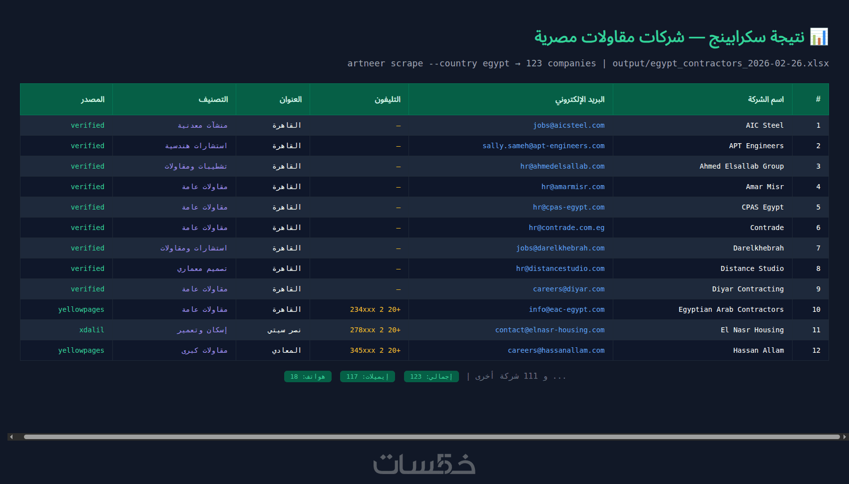 - جمع بيانات 123 شركة مقاولات مصرية من 8 مصادر مختلفة مع إيميلات وأرقام هواتف