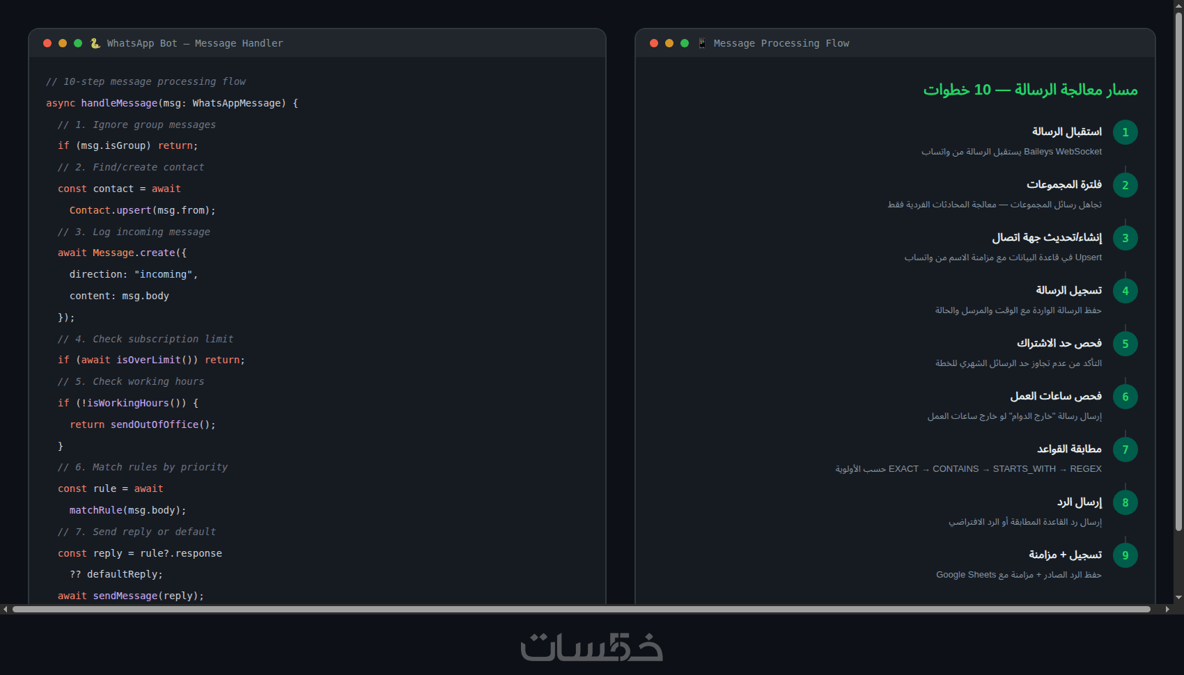 - ساعات عمل — يرد فقط في أوقات محددة ويرسل رسالة خارج الدوام