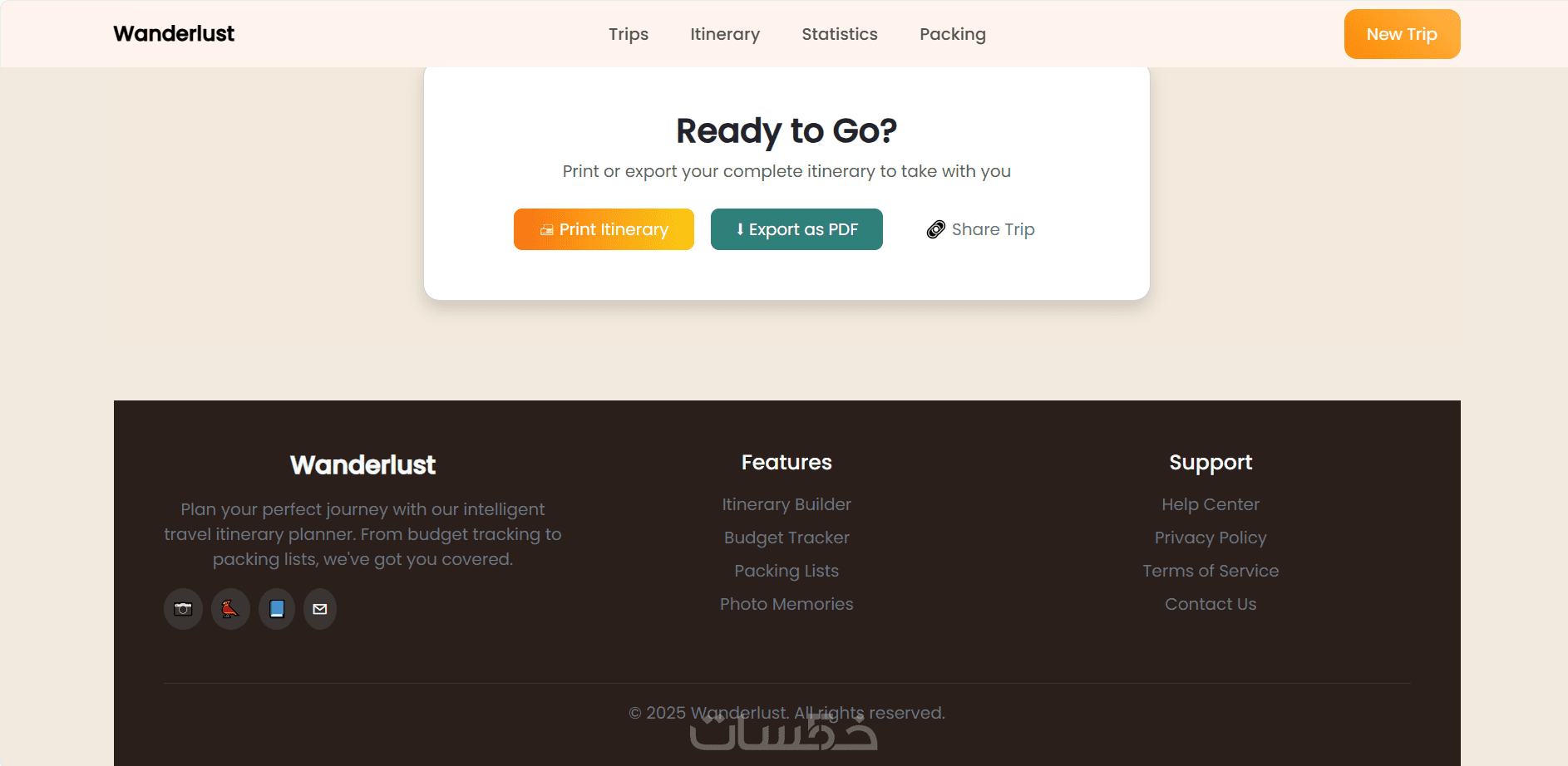 صفحات أساسية (مثل: الصفحة الرئيسية – صفحة الرحلات – صفحة التفاصيل)