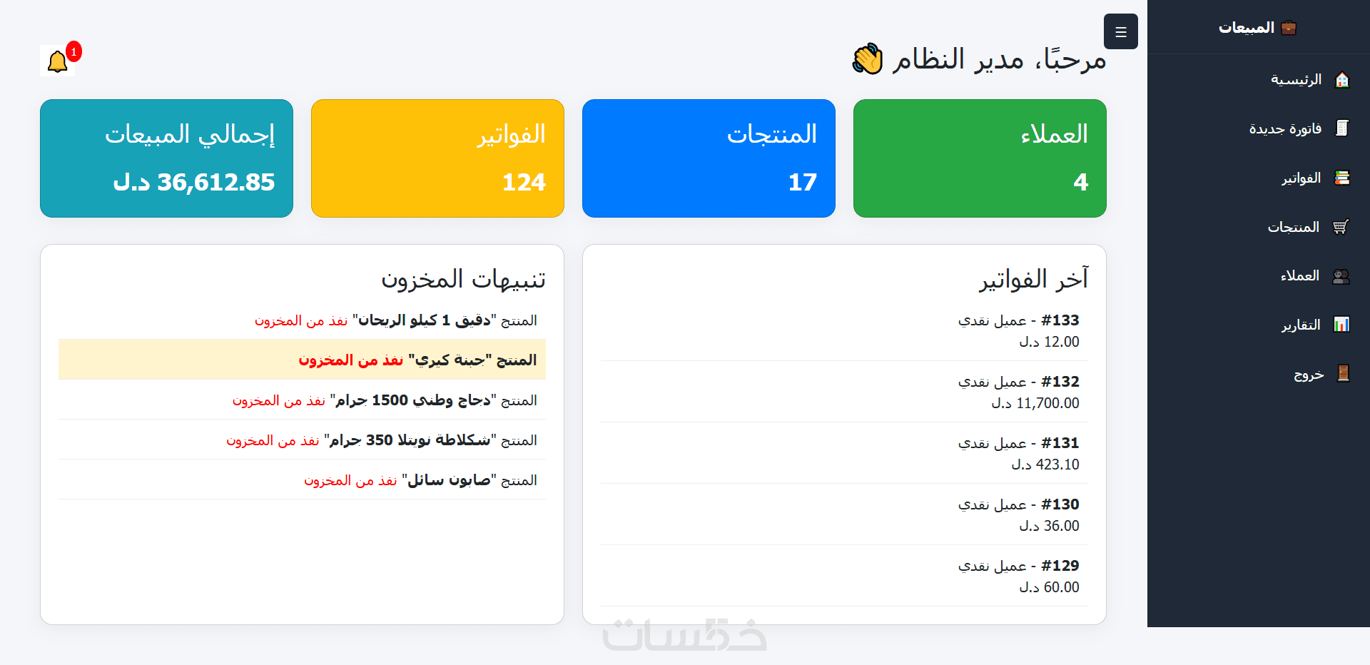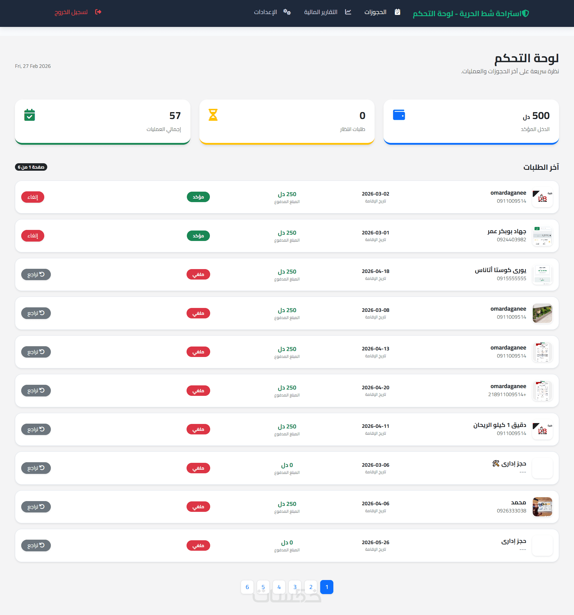 نسخة مفعلة من لوحة التحكم (كما في الصورة 1) لإدارة العمليات، العرض، التعديل، والحذف.