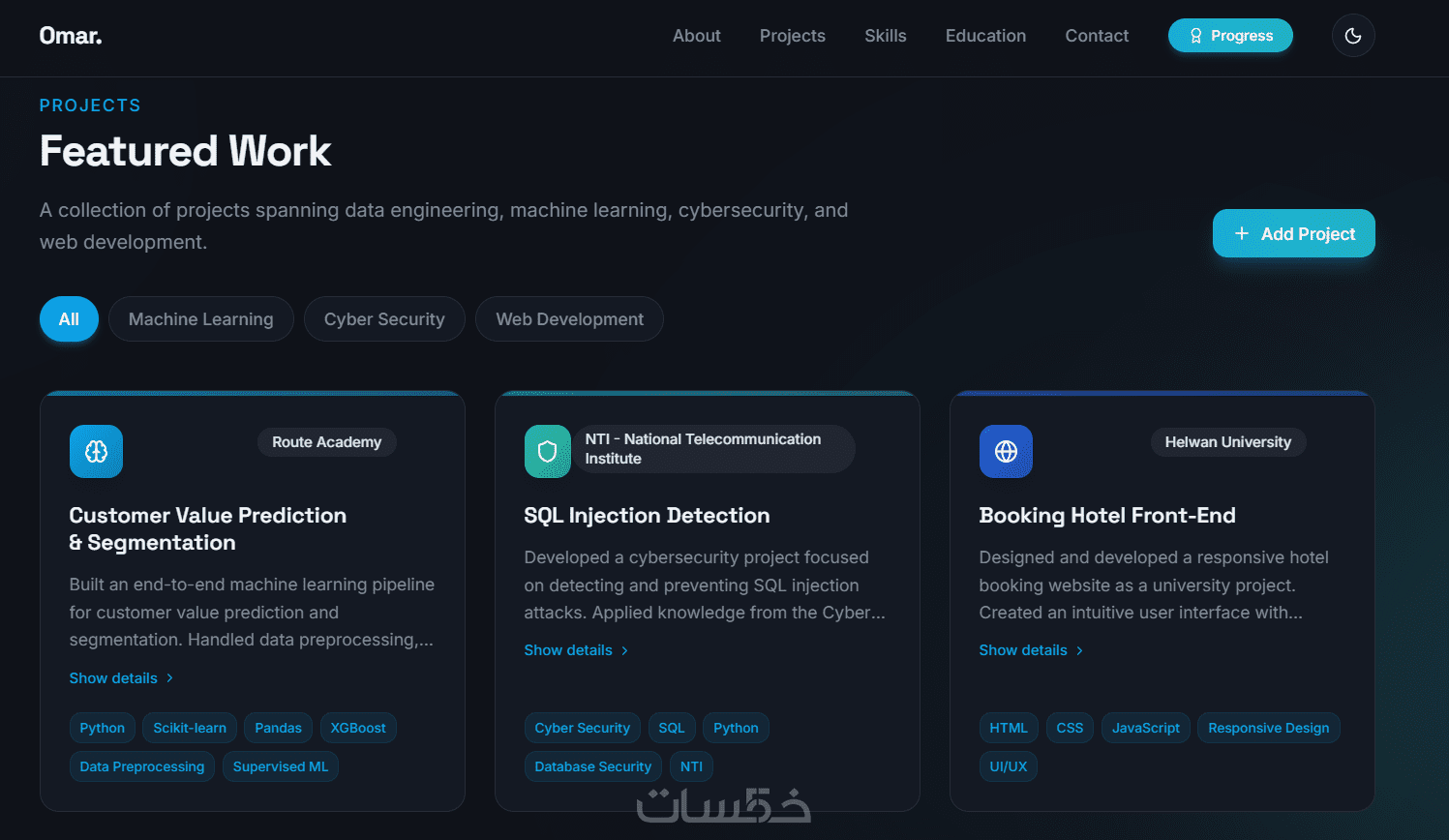 أقدم خدمة إنشاء موقع Portfolio احترافي يعرض أعمالك ومهاراتك بطريقة عصرية تساعدك على جذب العملاء وبناء هوية رقمية قوية.