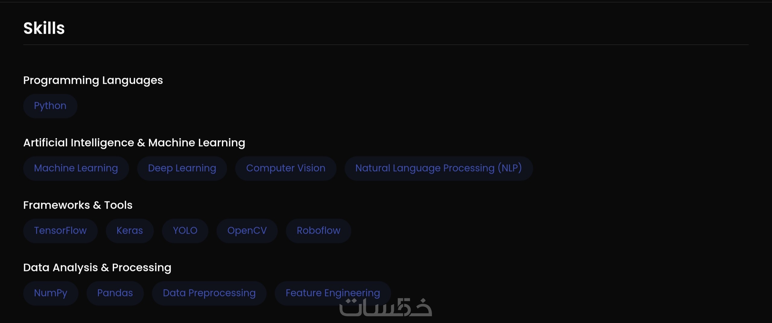 نبذة عنك ،التعليم ، الخبرة العمليه، الأعمال أو المشاريع السابقه ، خدماتك وطرق التواصل