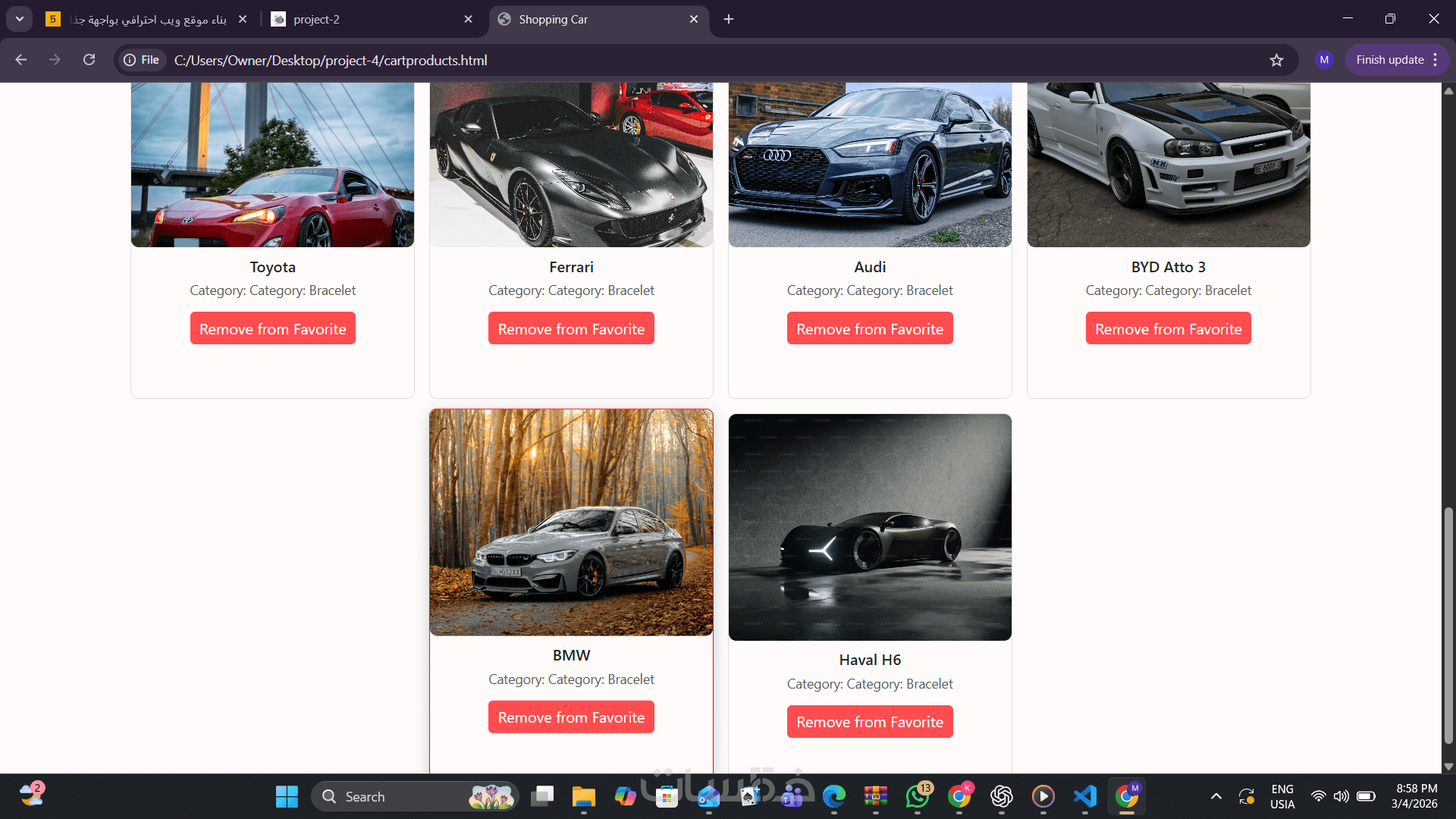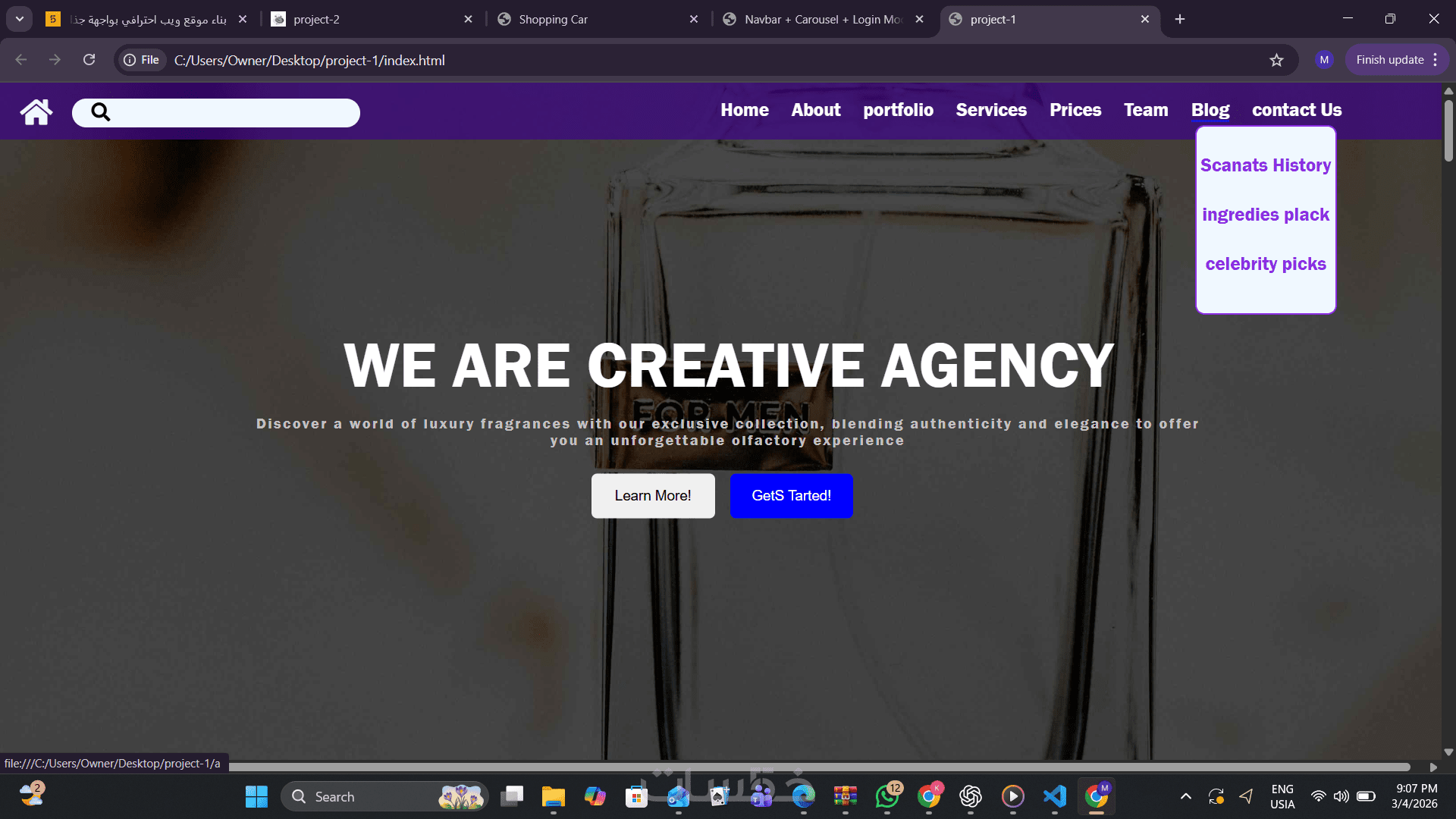موقع ويب يتألف من اربع صفحات : صفحة رئيسية للموقع.