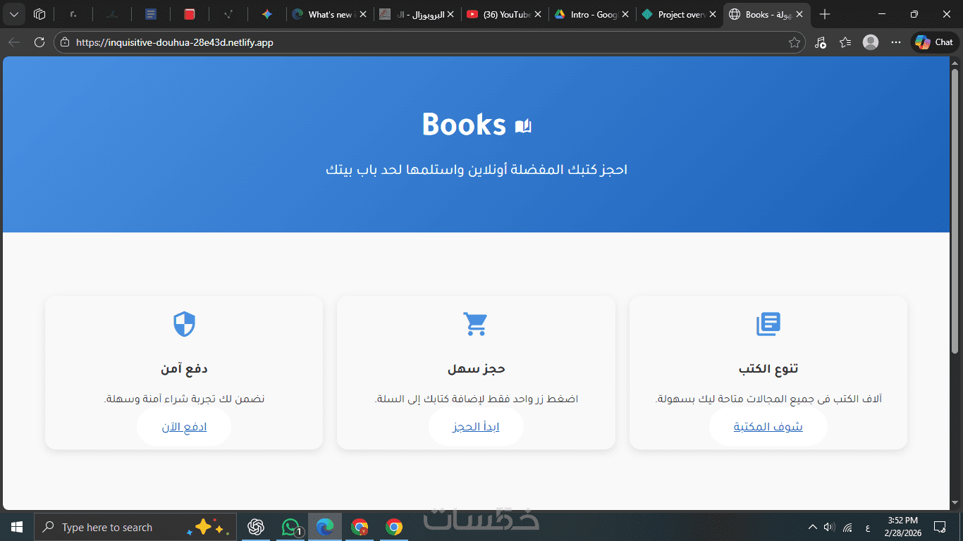 أقوم بتصميم صفحة هبوط احترافية لمطعم تساعد على عرض الخدمات وقائمة الطعام بشكل واضح وجذاب. الصفحة تكون متجاوبة مع جميع الأجهزة مثل الموبايل والتابلت والكمبيوتر، مع تصميم بسيط وسريع يسهّل على العميل الوصول للمعلومات والتواصل مع المطعم.