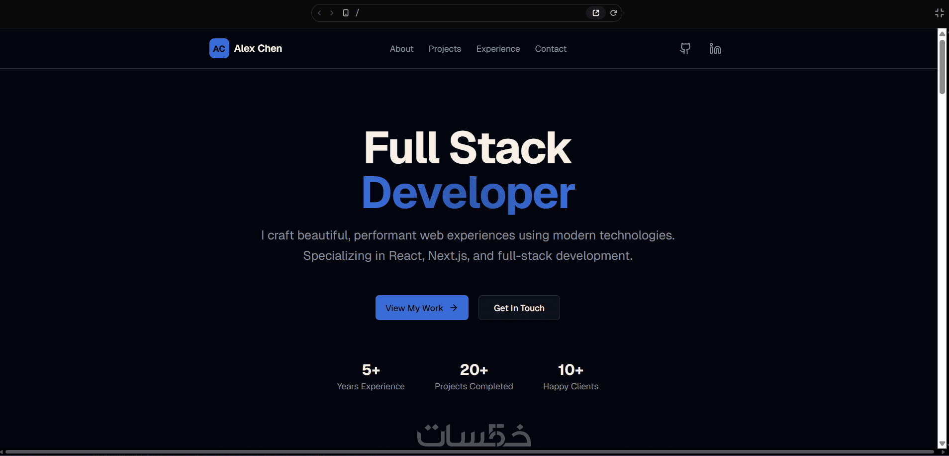 موقعك الشخصي هو بوابتك للعالم الاحترافي؛ فهو لا يعرض فقط ما قمت به، بل يعكس مدى احترافيتك واهتمامك بالتفاصيل. أقدم لك خدمة بناء معرض أعمال متكامل بأحدث التقنيات العالمية (Next.js & Tailwind CSS) لضمان تقديم تجربة مستخدم استثنائية وسرعة خارقة تجعل هويتك الرقمية تبرز بين الجميع