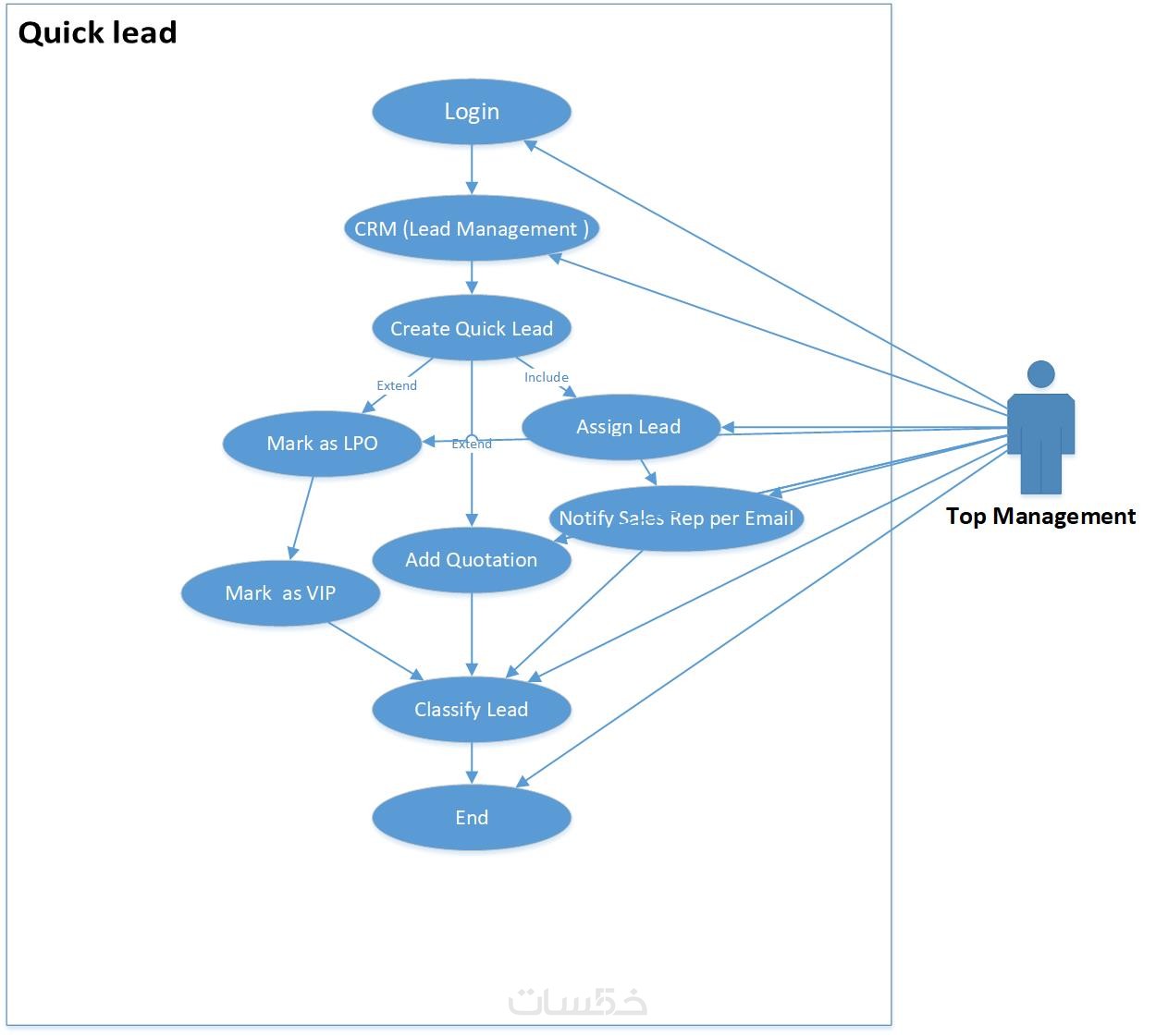 مخطط حالة الاستخدام (Use Case Diagram): رسم يوضح علاقة الممثلين (المستخدمين) بحالات الاستخدام (الوظائف) داخل النظام.