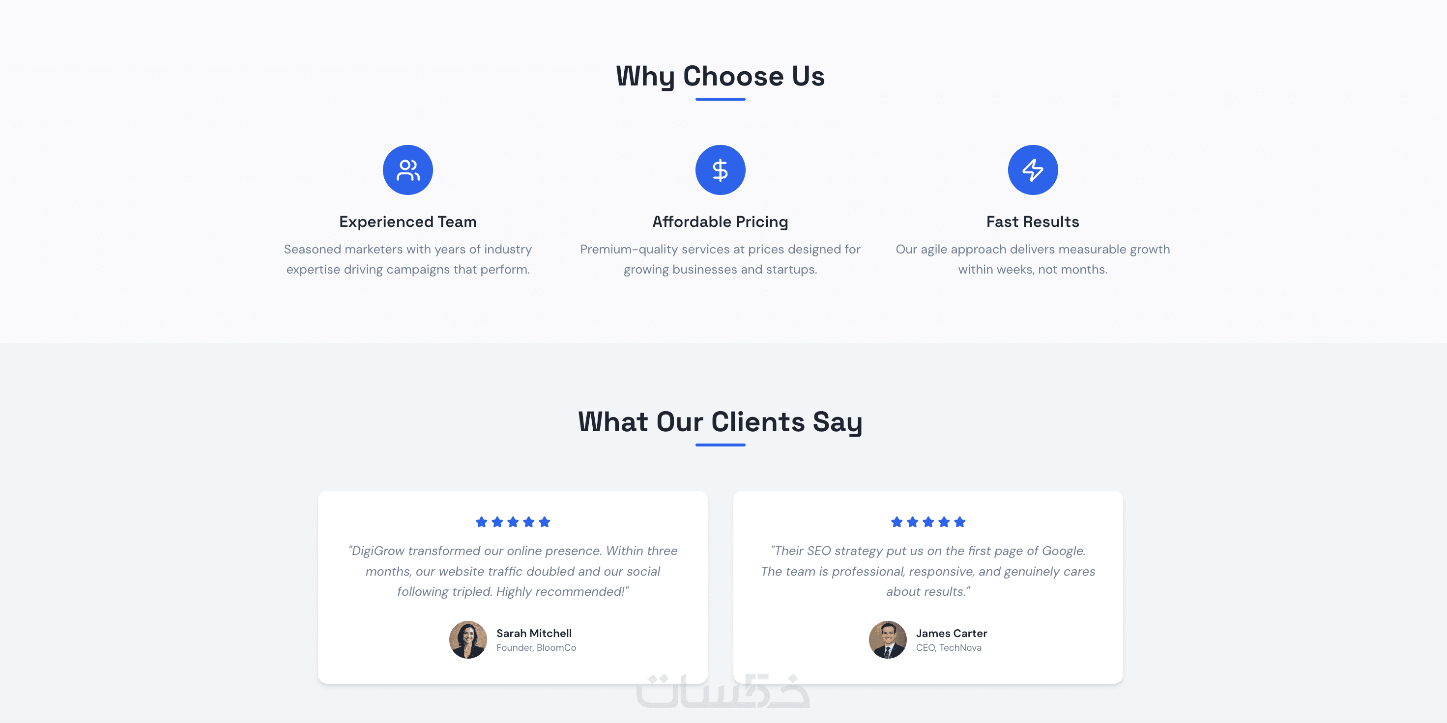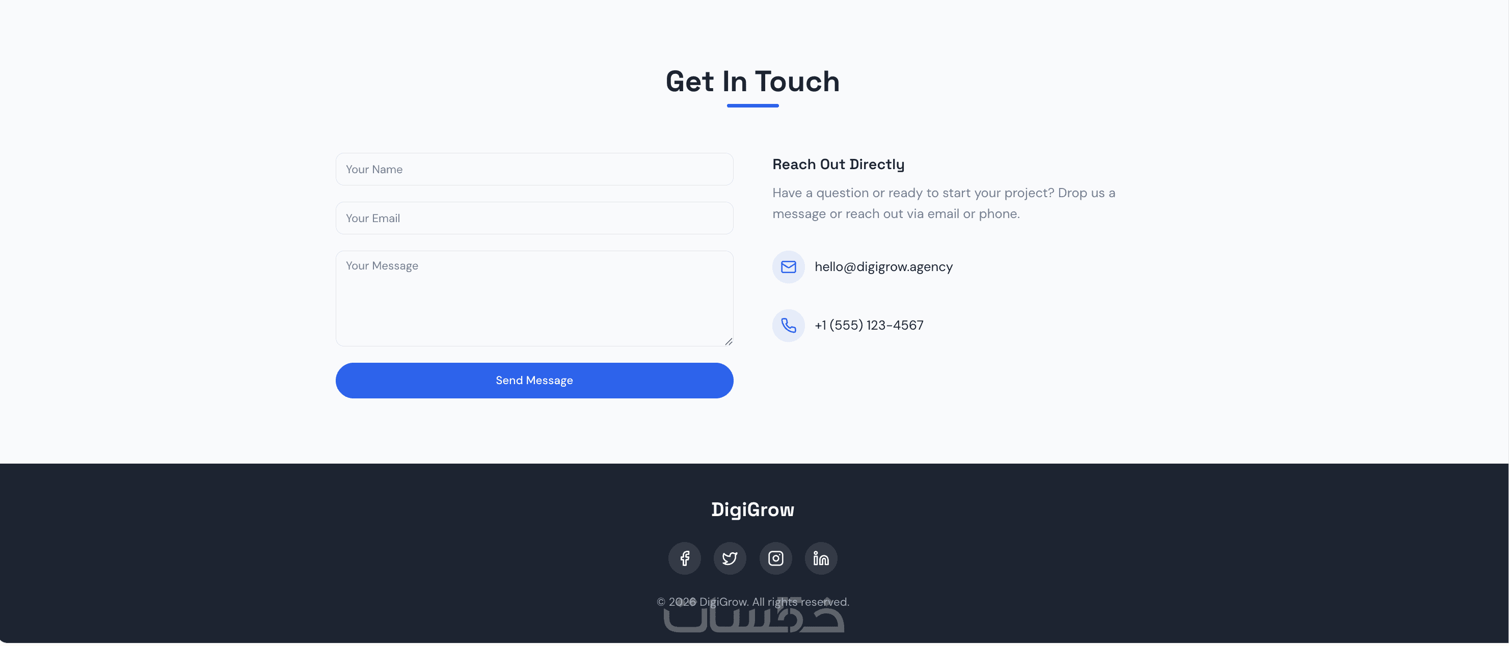 إذا كان مشروعك يحتاج إلى صفحات متعددة، أو برمجة تطبيق (React)، أو لوحة تحكم، يرجى اختيار ما يناسبك من قسم "تطويرات الخدمة" الموجود بالأسفل.