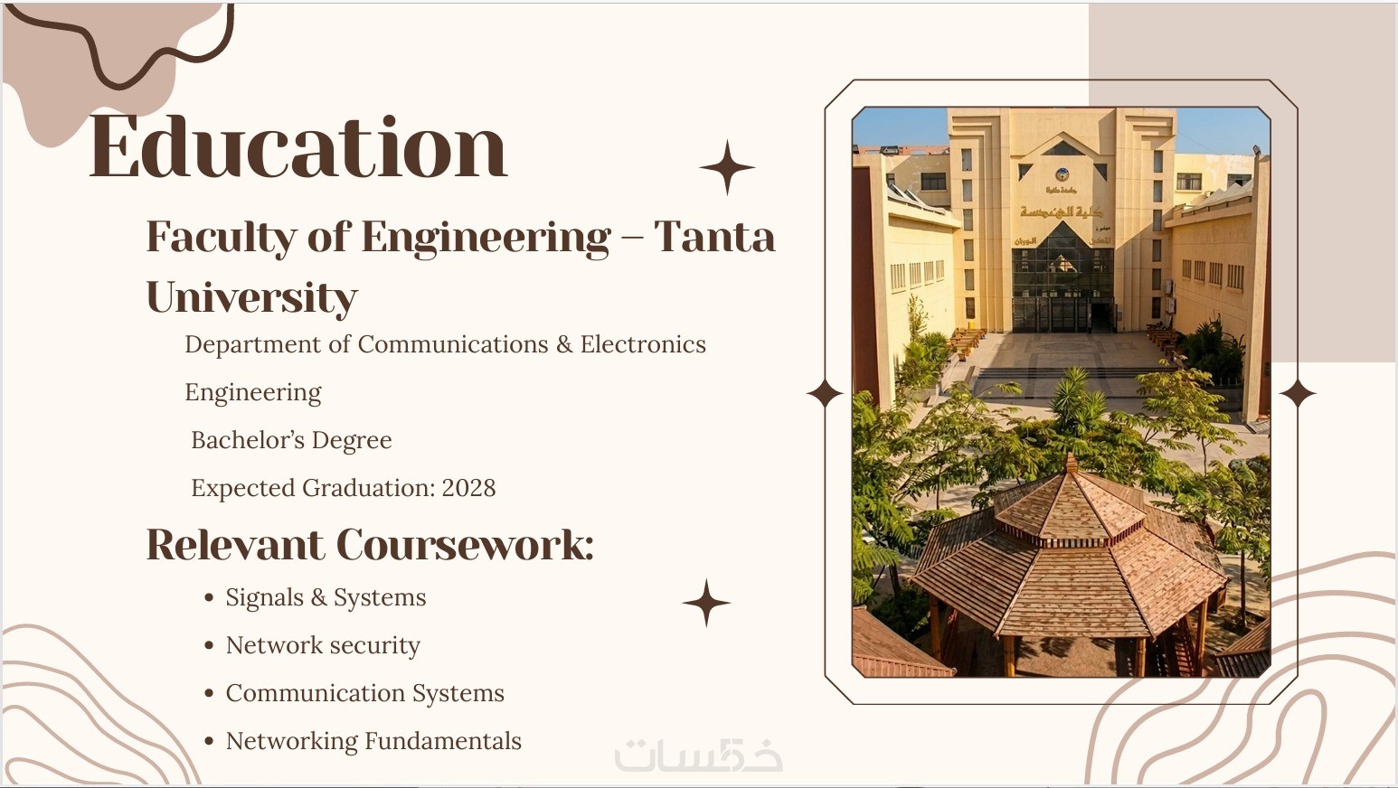 التصميم سيكون منظم، واضح، وسهل القراءة ليعكس شخصيتك المهنية ويجعل بروفايلك أكثر احترافية عند التقديم للوظائف أو عرض أعمالك.