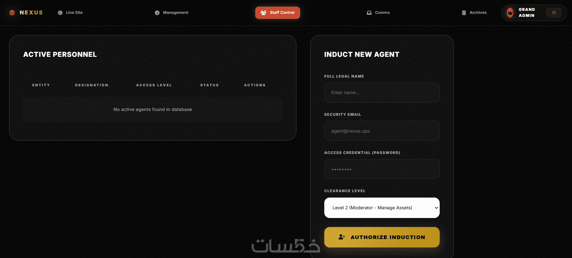 لوحة تحكم او ربط الموقع بقاعدة بينات