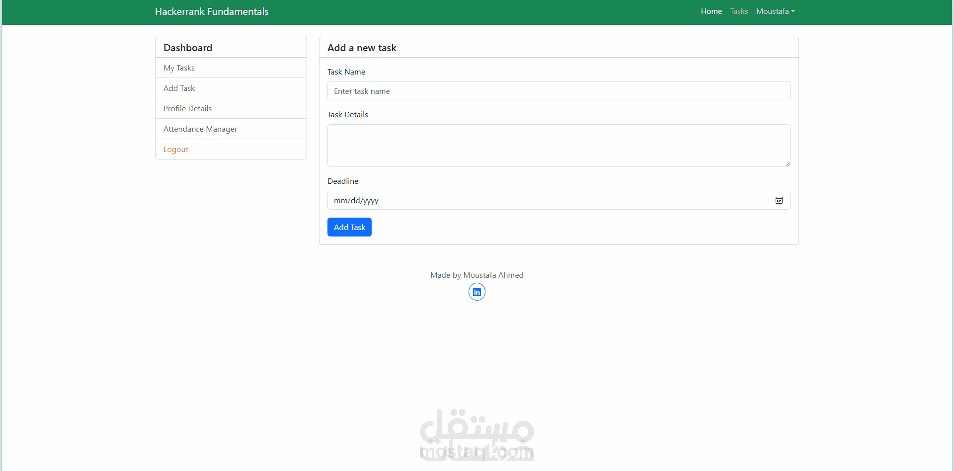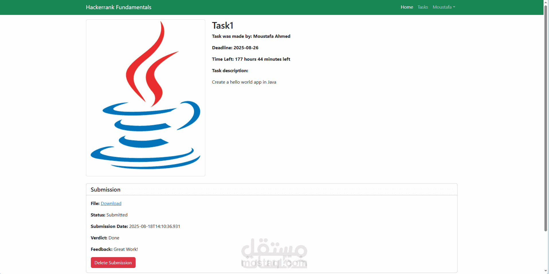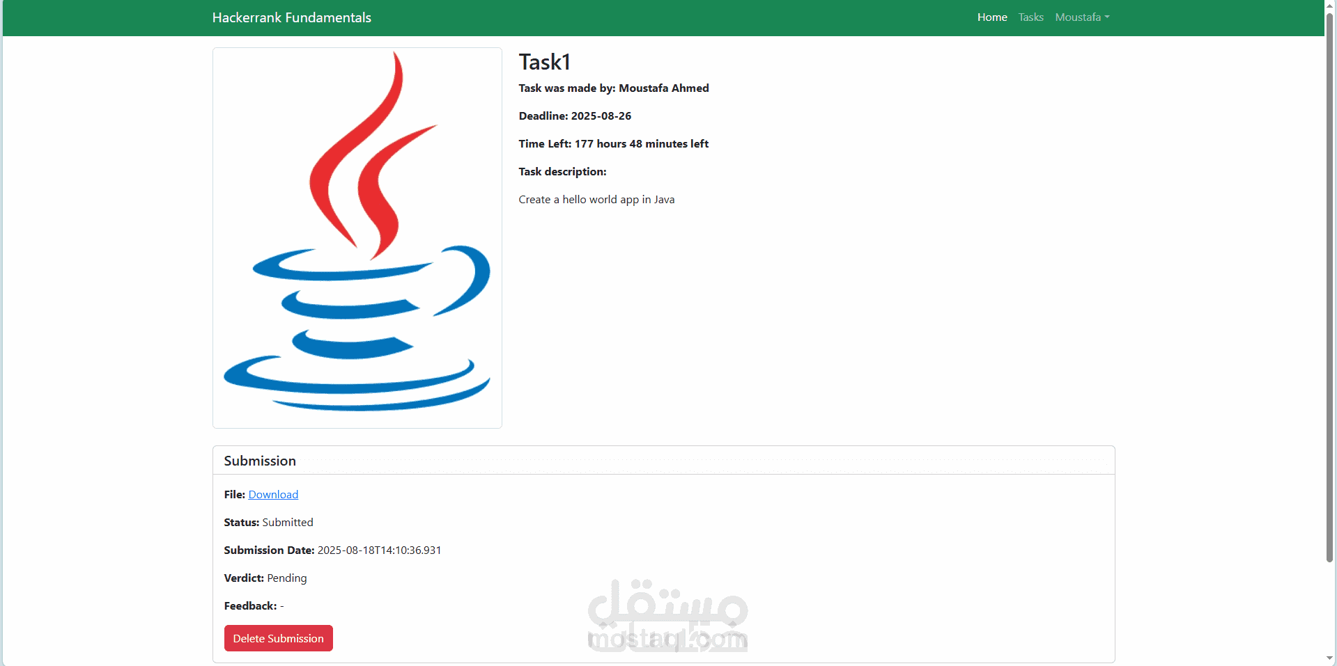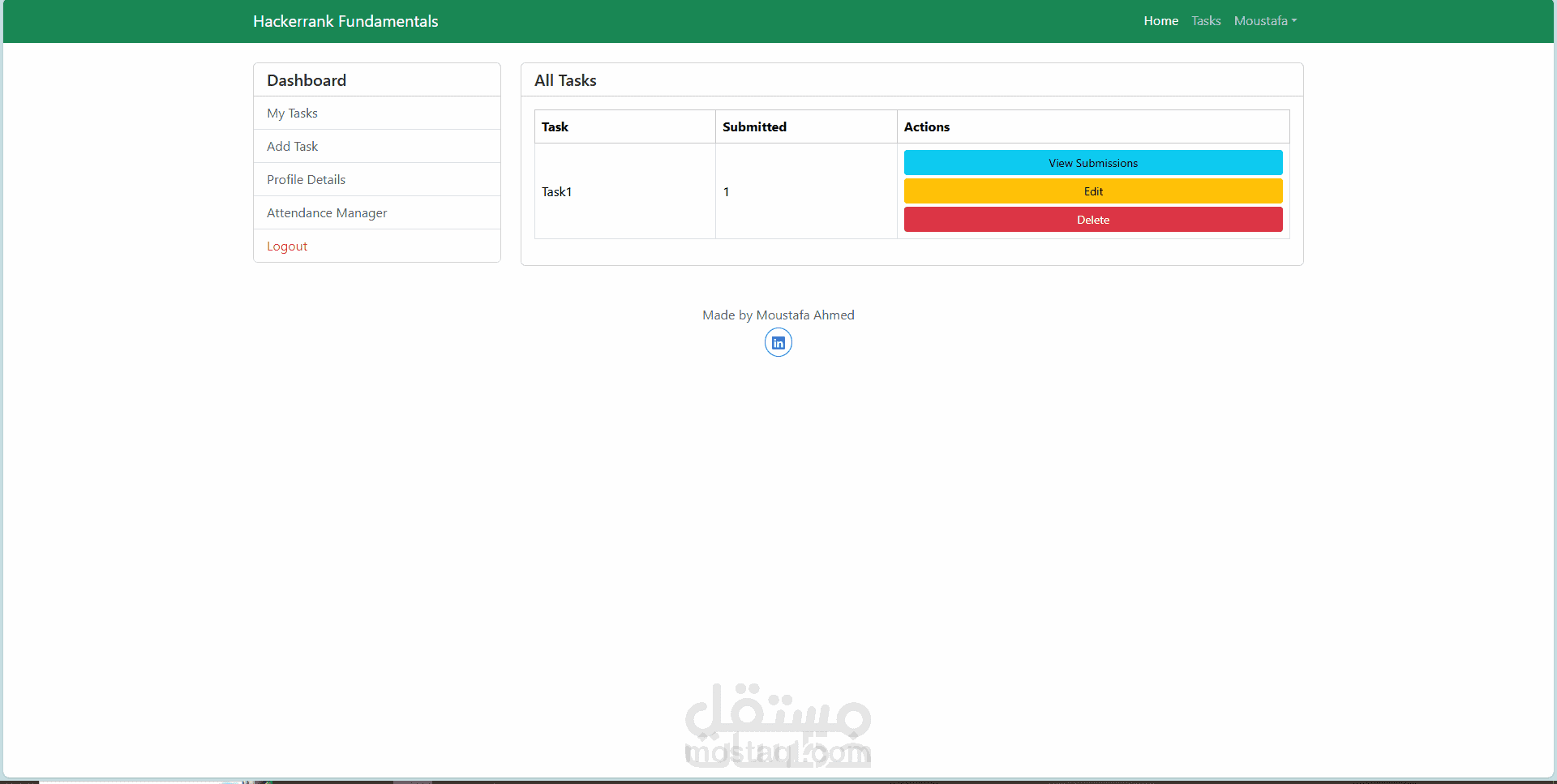 لوحة تحكم الطالب: استلام المهام، رفع الحلول، مراجعة تقييم المعلم، ومتابعة سجل الحضور والغياب.