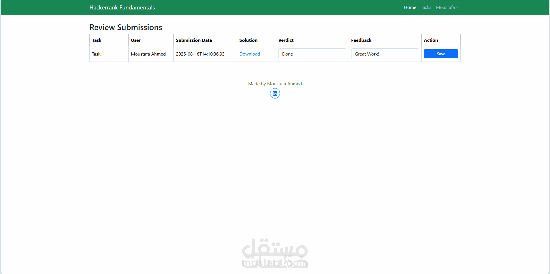 لوحة تحكم المعلم: رفع المهام الأسبوعية وتحديد مواعيد التسليم (Deadlines)، مراجعة حلول الطلاب وتقييمها وإضافة تعليقات، وتسجيل الحضور والغياب.