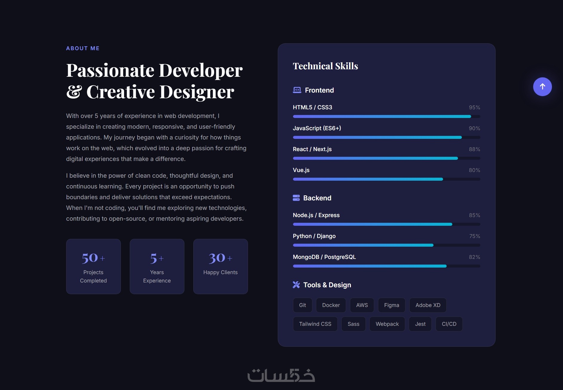 موقع Portfolio بتصميم حديث ومنظم يساعدك على عرض مهاراتك وأعمالك بشكل احترافي يجذب العملاء.