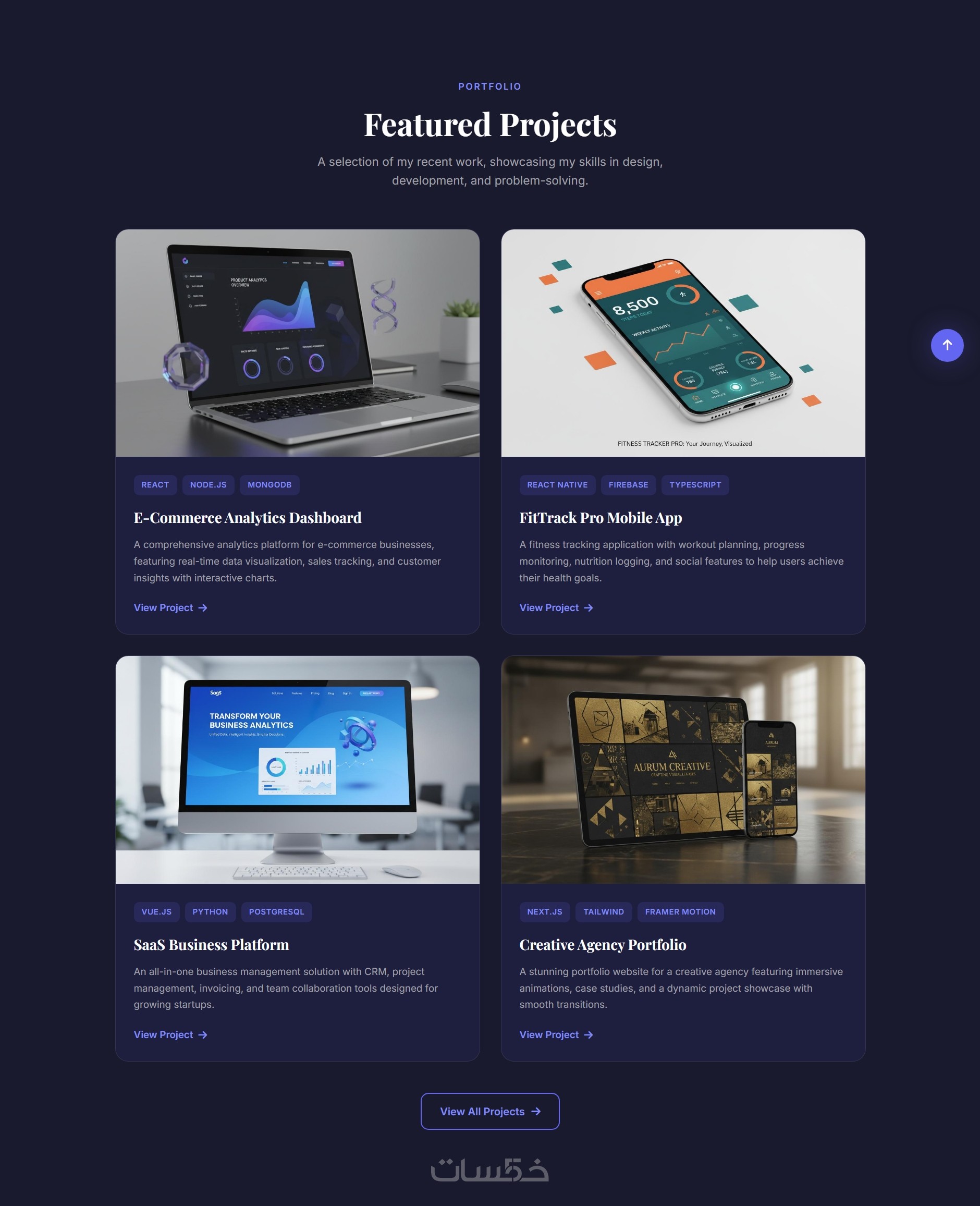 • قسم Projects لعرض حتى 3 مشاريع