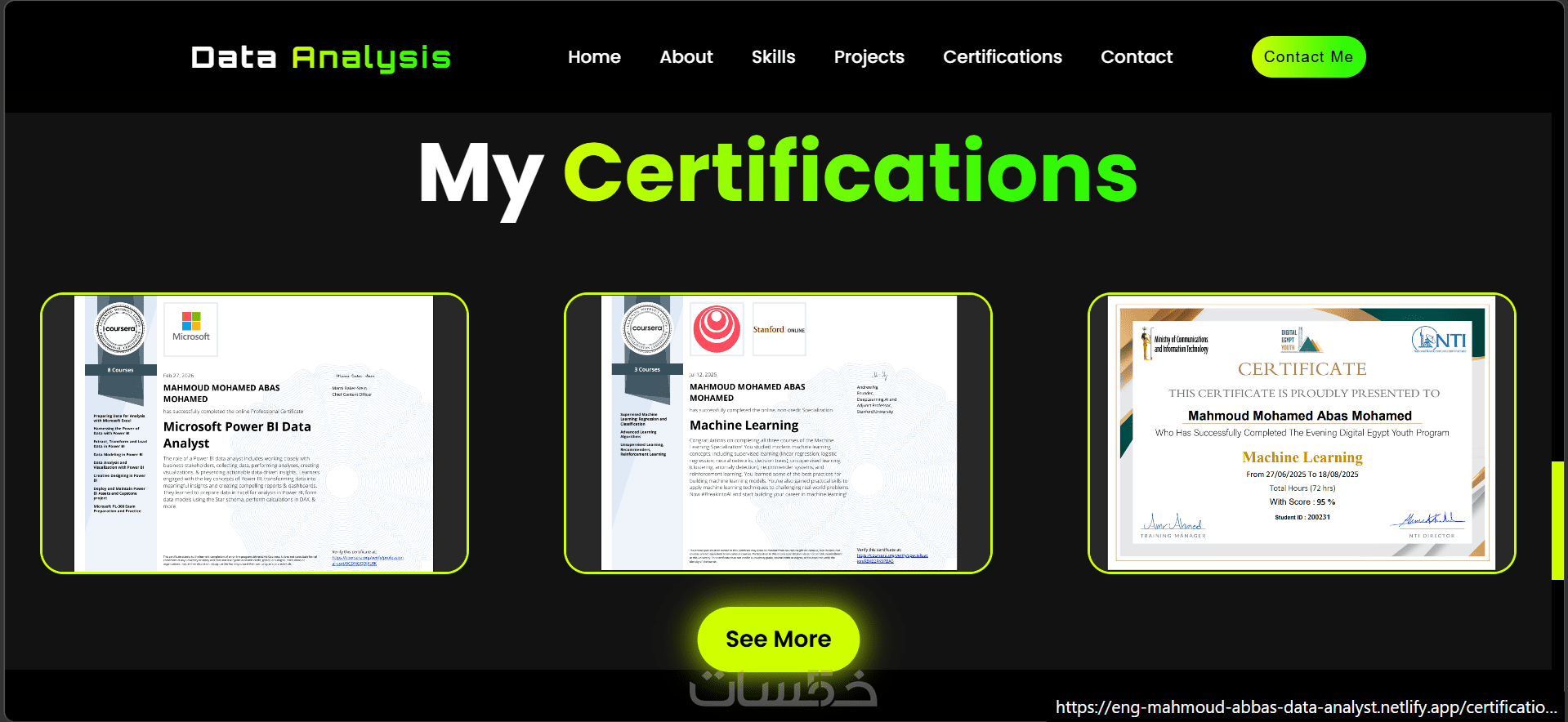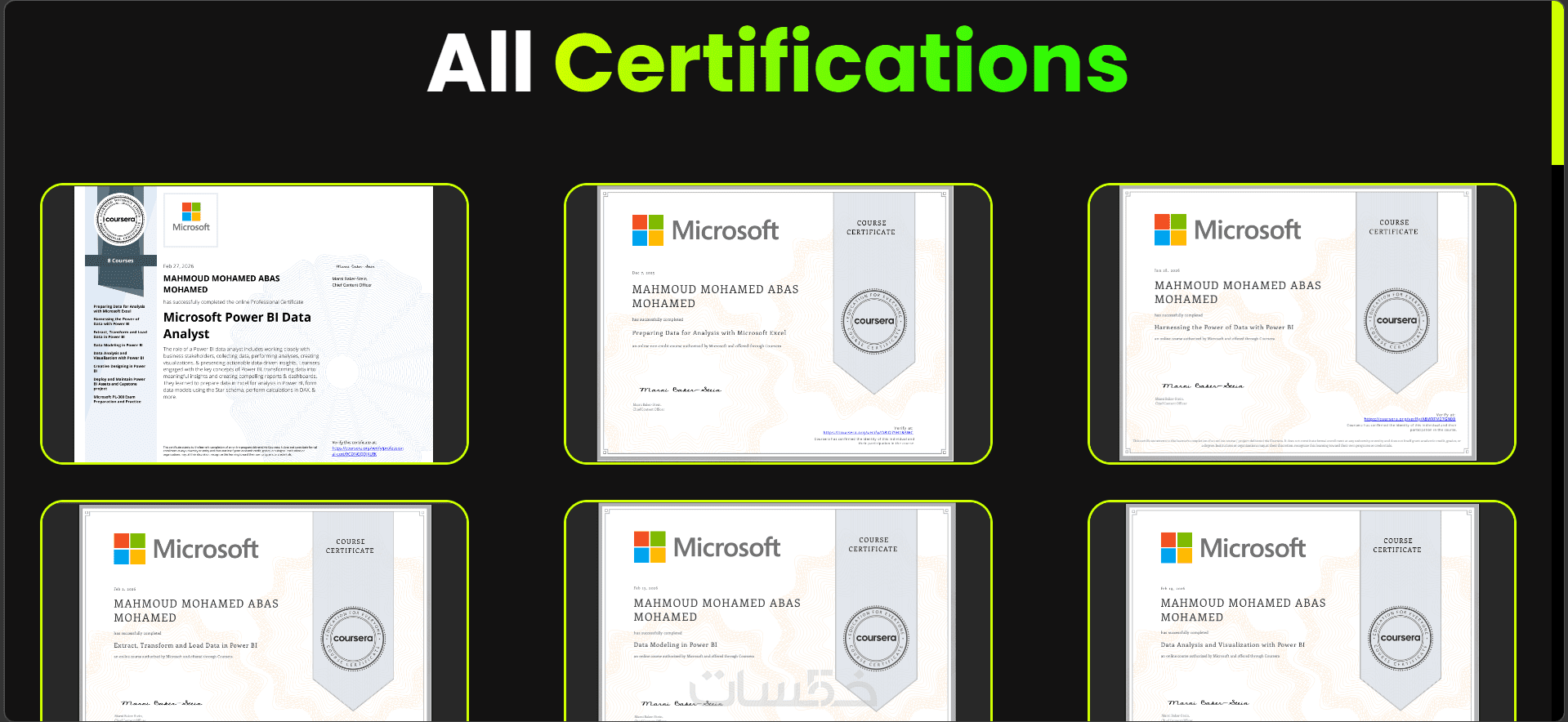 ✔ عرض المشاريع والشهادات بطريقة منظمة