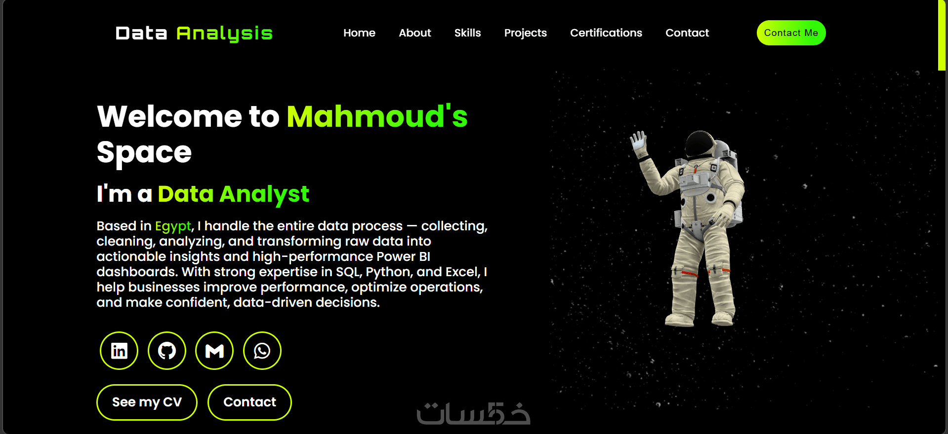 ✔ أزرار تواصل مباشرة مثل LinkedIn و WhatsApp و GitHub