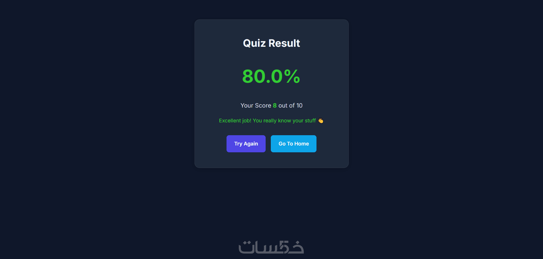 يمكنني إنشاء صفحة كويز تحتوي على أسئلة متعددة الخيارات مع عرض النتيجة النهائية بشكل تفاعلي وسهل الاستخدام.
