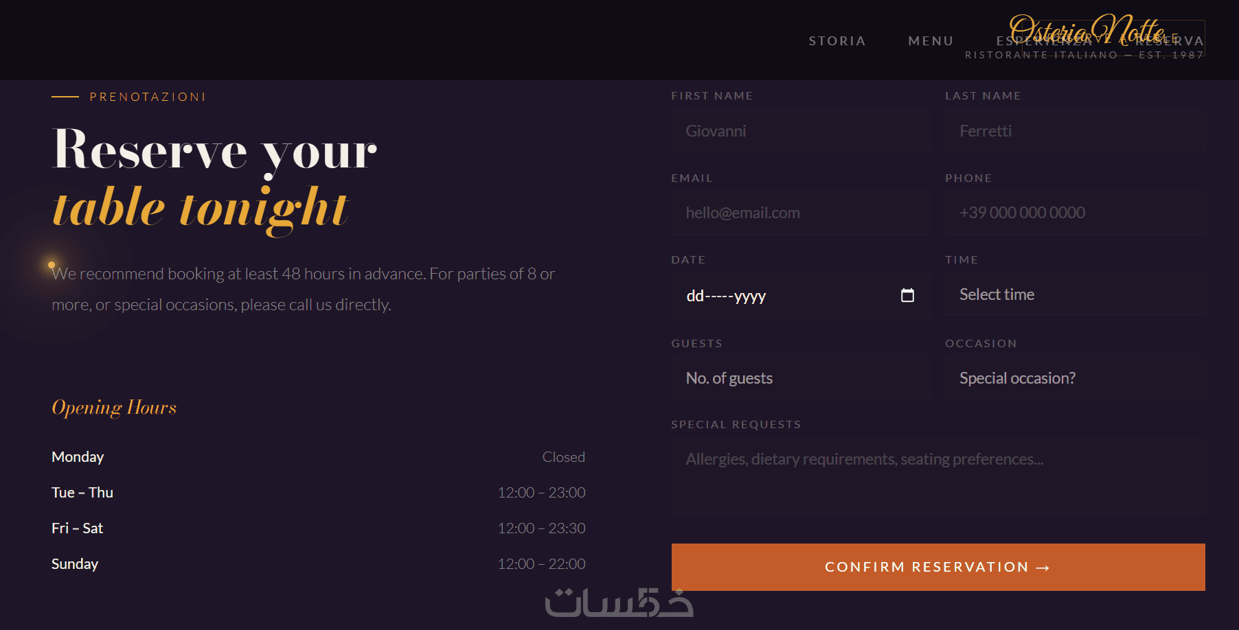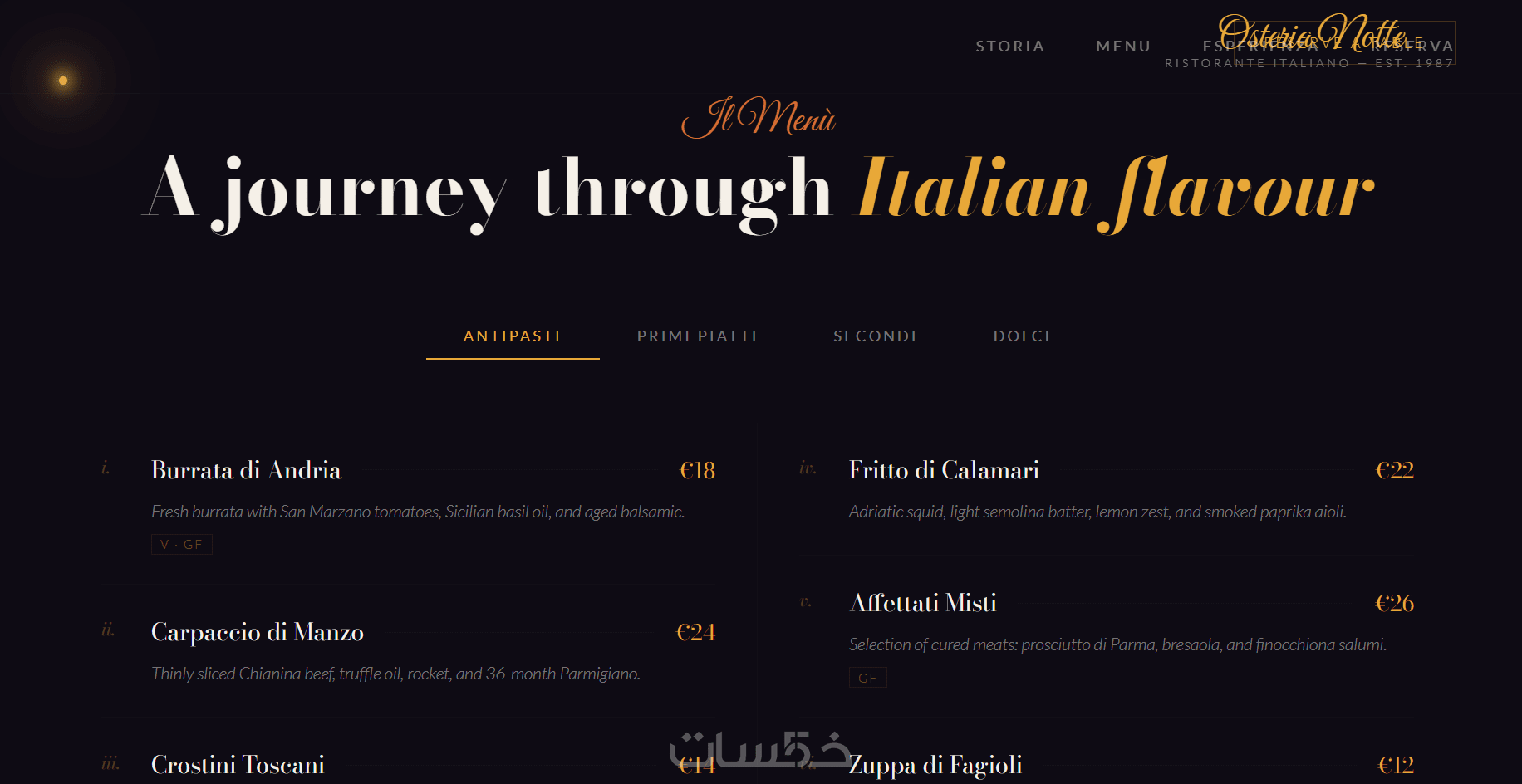 كمصمم ويب، قمت بتطوير موقع . يركز الموقع على تجربة مستخدم غامرة تعكس جو المطعم الرومانسي المضاء بالشموع، مع لوحة ألوان دافئة تجمع الأسود العميق، البرتقالي الترابي، الأحمر النبيذي، والذهبي اللامع. الهيكل عبارة عن صفحة واحدة متدفقة مع أقسام: البطل للترحيب، قصة المطعم مع صور تاريخية، قائمة طعام تفاعلية بعلامات تبويب للأطباق مثل Antipasti وPrimi بوصف مفصل وسعر، صور الديكور الداخلي مع تأثيرات انتقالية، ونموذج حجز مدمج. استخدمت HTML5، CSS3 مع متغيرات للألوان، وجافا سكريبت لمؤشر فأرة يشبه لهب شمعة مع جزيئات متوهجة، وتأثيرات كشف عند التمرير بـIntersection Observer. الموقع متجاوب تمامًا للهواتف والأجهزة المكتبية، سريع التحميل (أقل من 2 ثوانٍ)، ومحسن لمحركات البحث. في الحالات الخاصة، يدعم إضافة لغات متعددة أو API للحجوزات. مثالي لقطاع الضيافة، يبرز مهاراتي في التصميم التفاعلي
