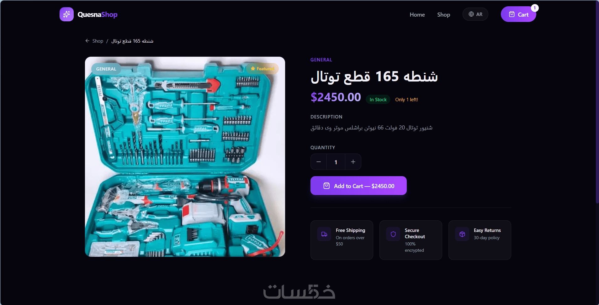 • صفحة تفاصيل المنتج: صور + وصف + سيلكتور الكمية