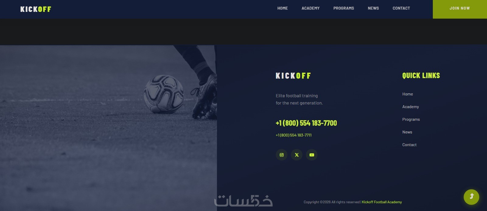 Footer كامل مع روابط التواصل الاجتماعي