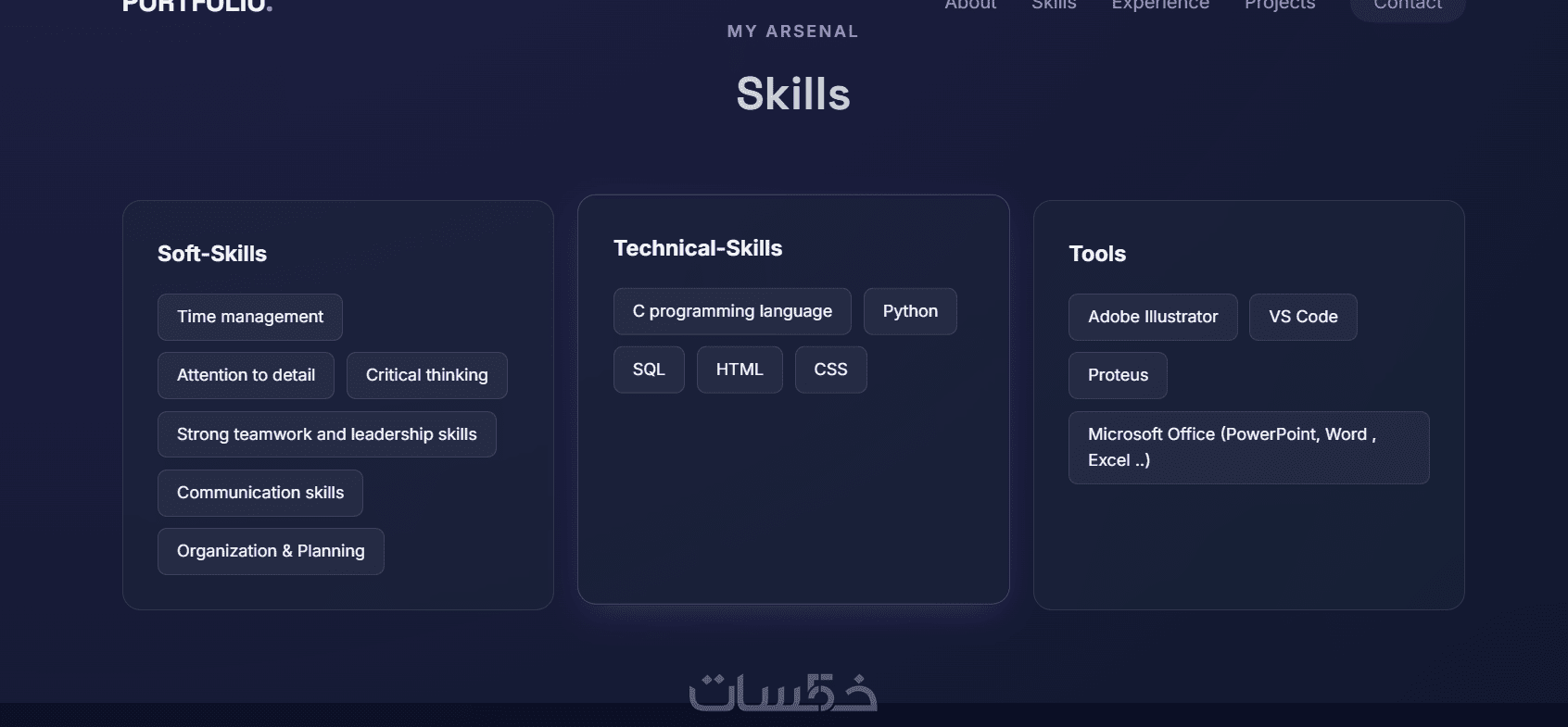 صياغة نصية احترافية لقسم "نبذة عني" تلخص مسارك المهني، بالإضافة إلى قائمة منظمة بمهاراتك التقنية (Hard Skills) والشخصية (Soft Skills) التي تهم أصحاب العمل.