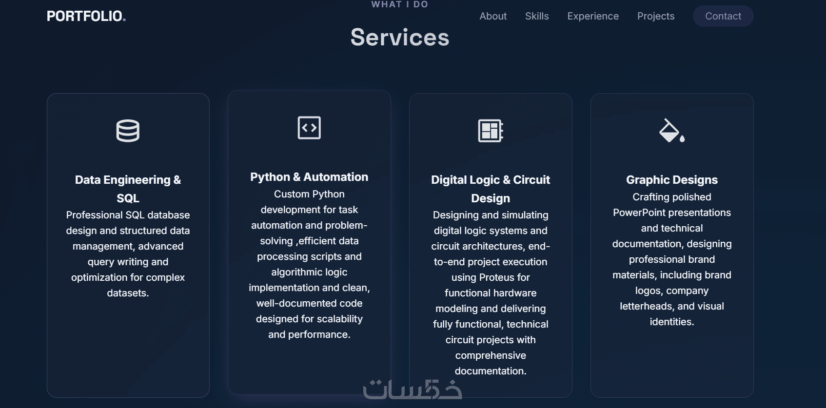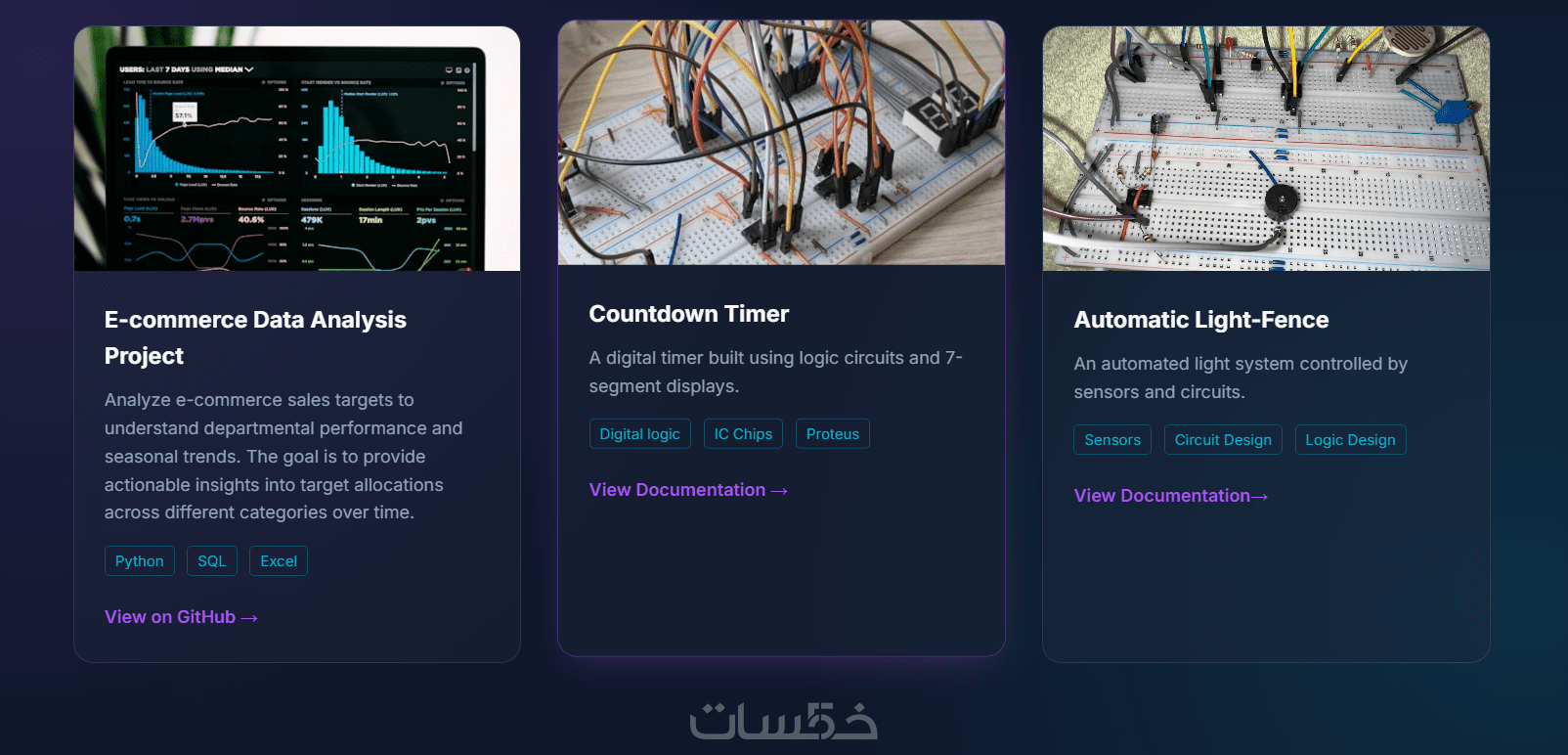 بصفتي متخصصاً في علوم البيانات وعلى دراية تامة بمعايير العرض في المنصات التقنية، سأقوم بمساعدتك في بناء معرض أعمال (Portfolio) يجمع بين التنظيم والجمالية التقنية