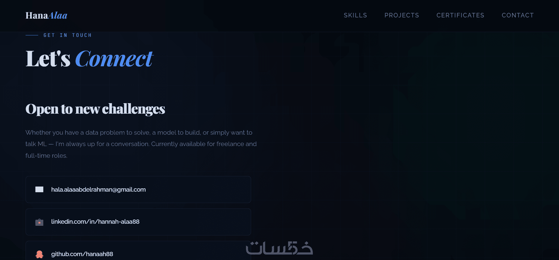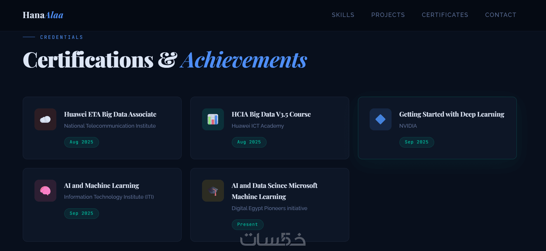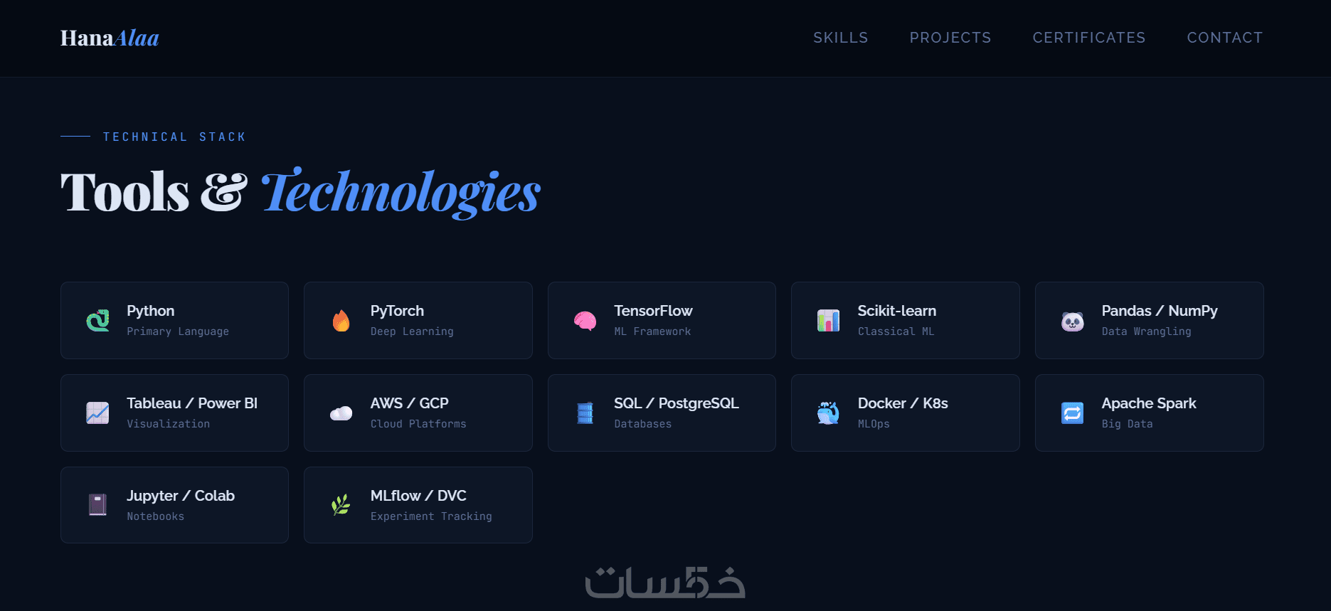- Skills: عرض مهاراتك والتقنيات اللي بتستخدمها