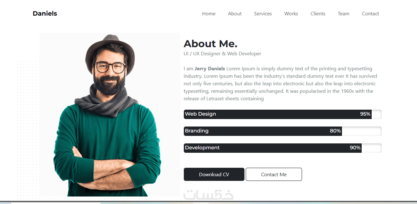 صفحات أساسية (الرئيسية – المشاريع – المهارات – تواصل)