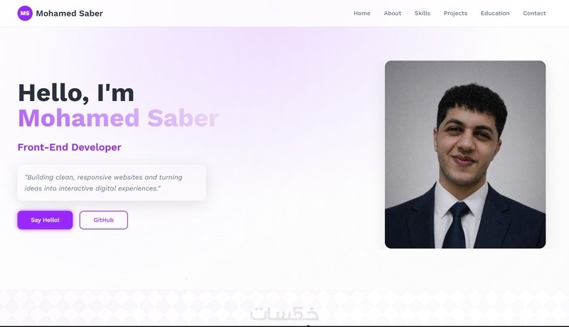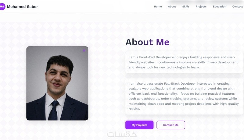 أنا محمد، مطور Front-End، أقدم لك تصميم وتطوير موقع Portfolio عصري وجذاب يساعدك في عرض أعمالك بشكل احترافي.