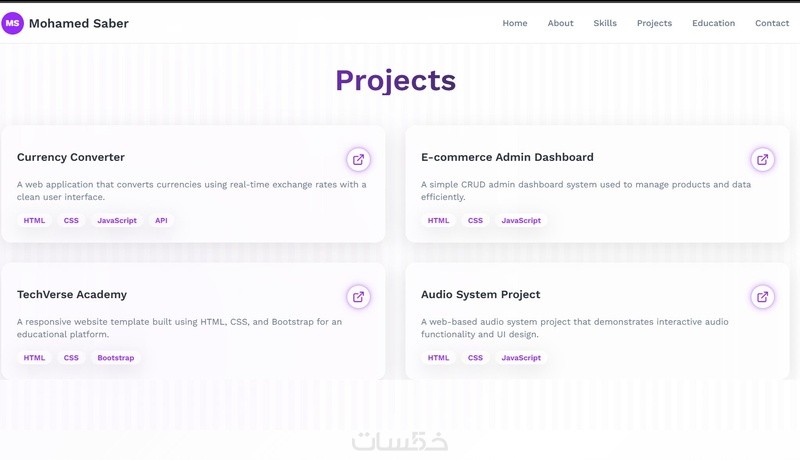 - إمكانية إضافة أقسام (About - Skills - Projects- Services - Contact)