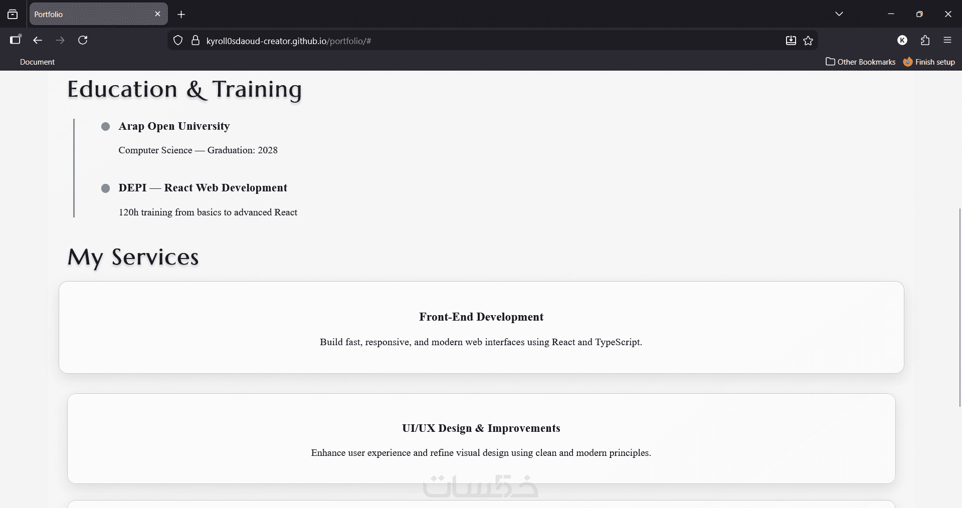 طوير الواجهة باستخدام تقنيات حديثة مثل React