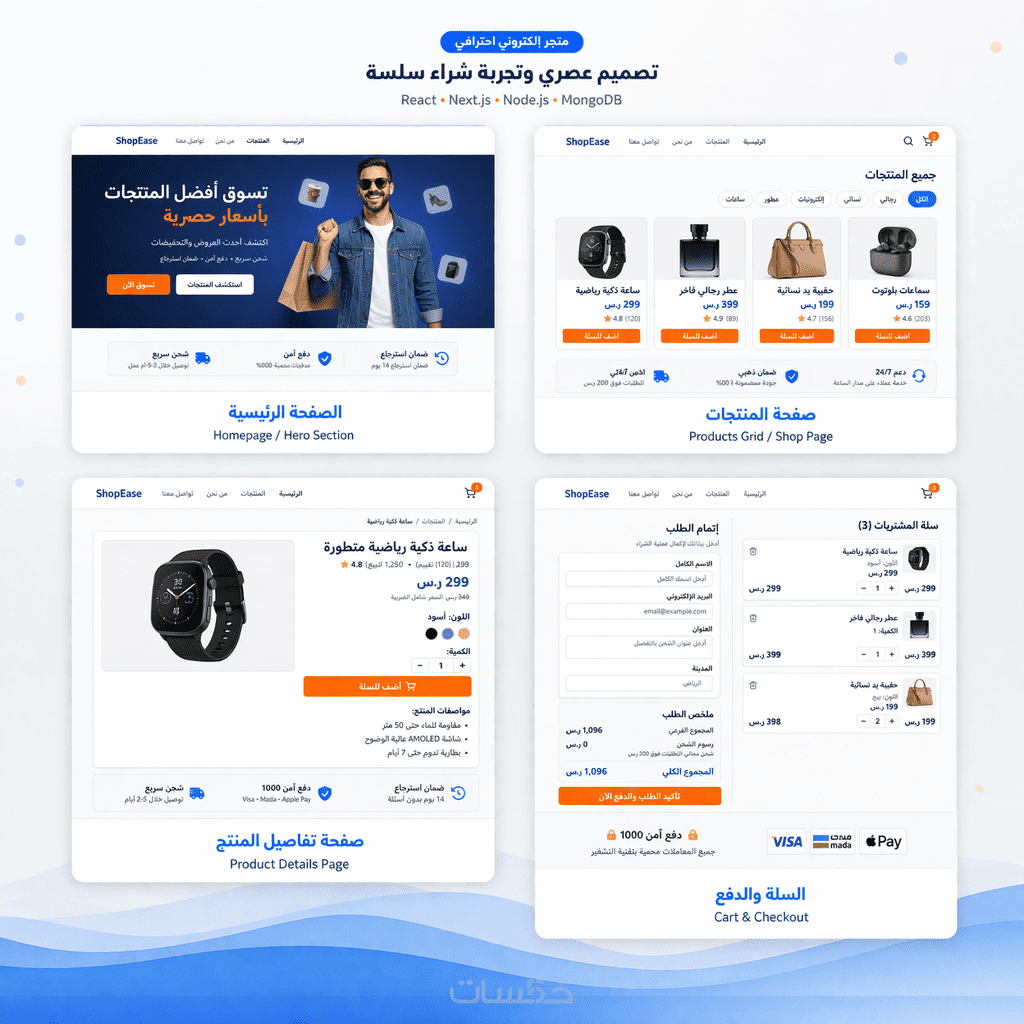 سأقوم بتطوير متجر إلكتروني متعدد الصفحات، ويشمل عادة: