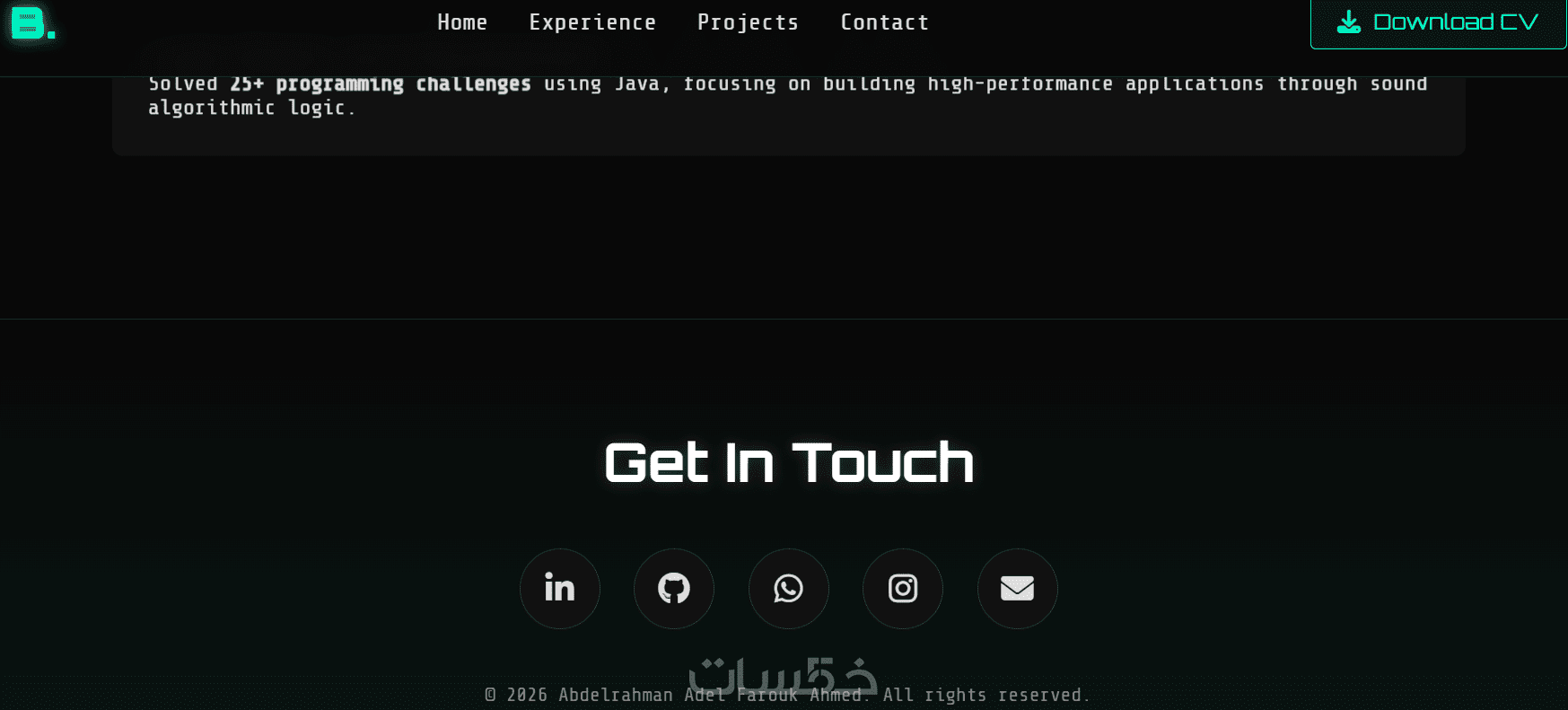 أنا عبدالرحمن، مطور برمجيات وطالب بـ (AI) ومتدرب بـ (DEPI). سأحول أعمالك إلى معرض حي بأسلوب Minimalist يركز على الإبداع والسرعة.
